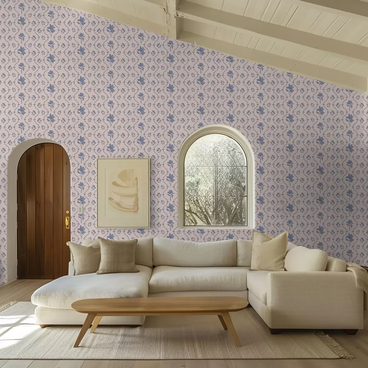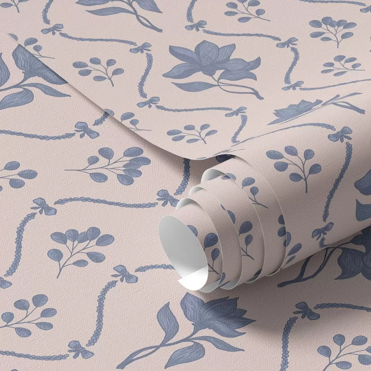 Тапет Малки цветя и панделки в сини и розови нюанси Nr. a00808v3