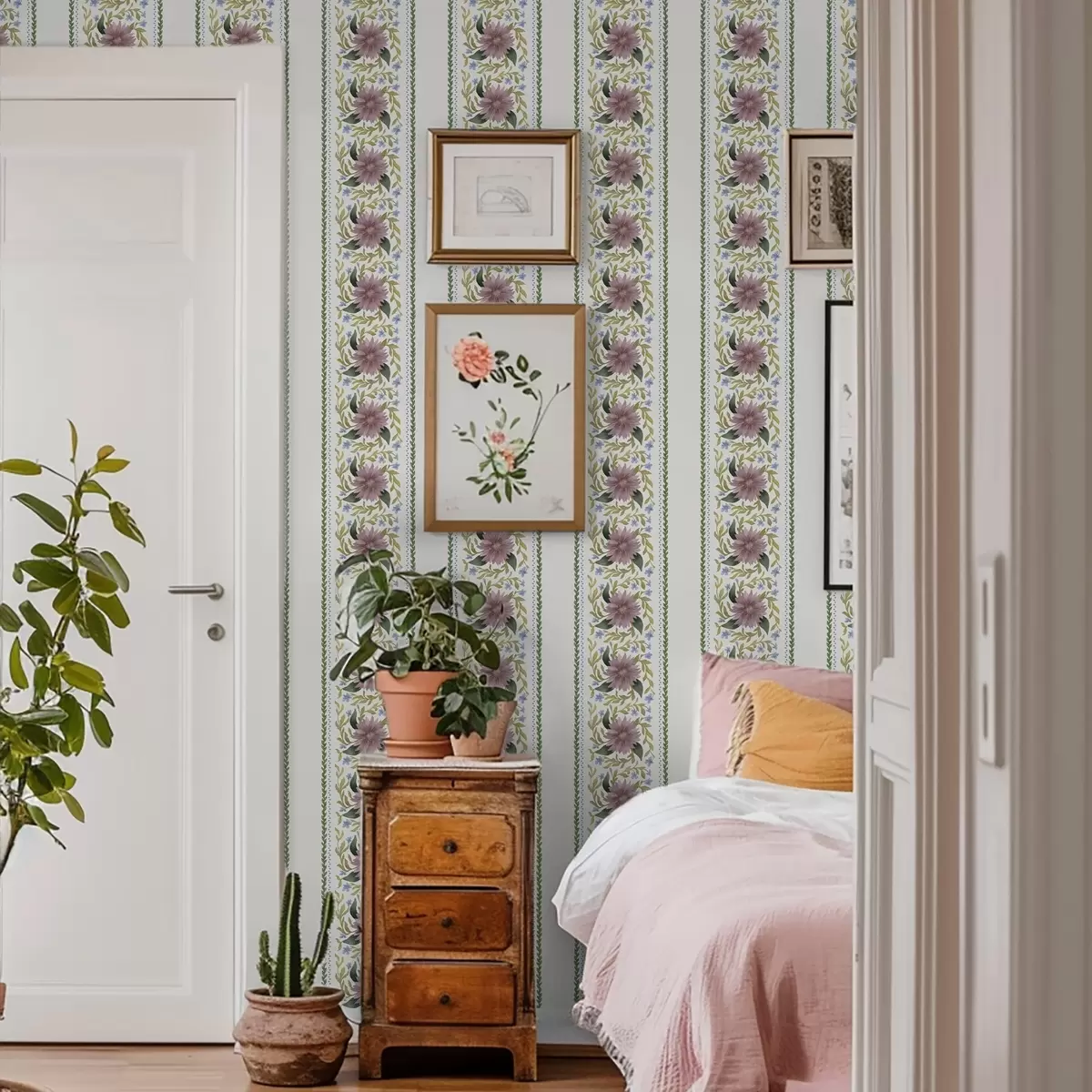 Тапет Вертикални флорални ивици в лилаво-сини тонове Nr. a00809