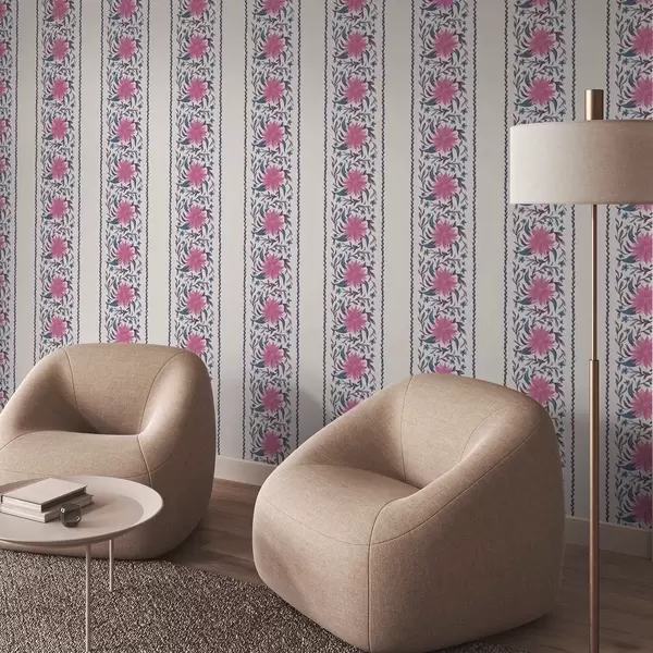 Тапет Вертикални флорални ивици в розово-лилави тонове Nr. a00810