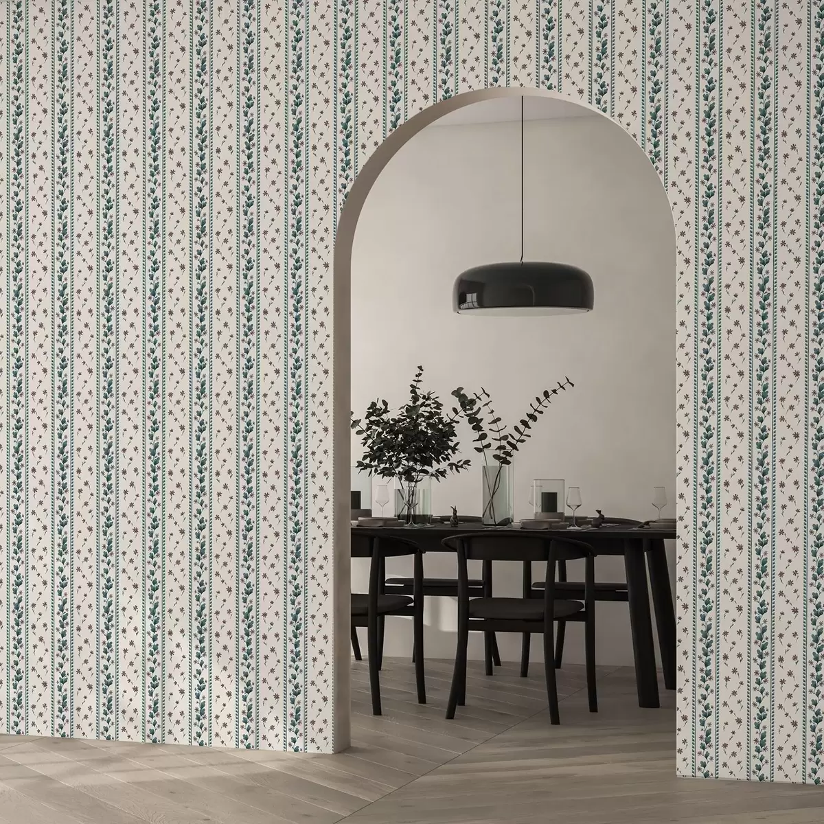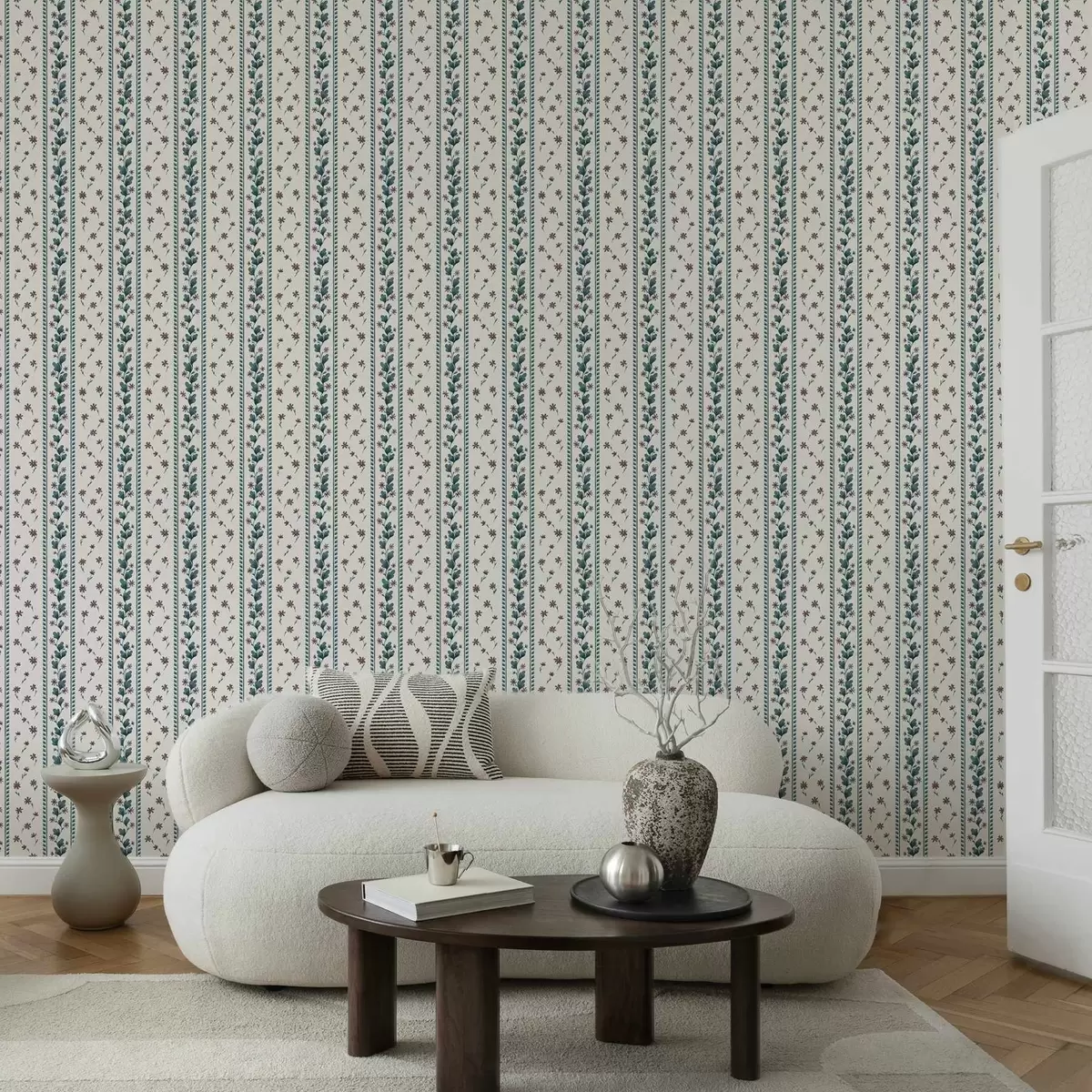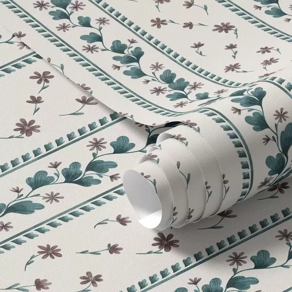 Тапет Вертикални флорални ивици в синьо-кафяви тонове Nr. a00811