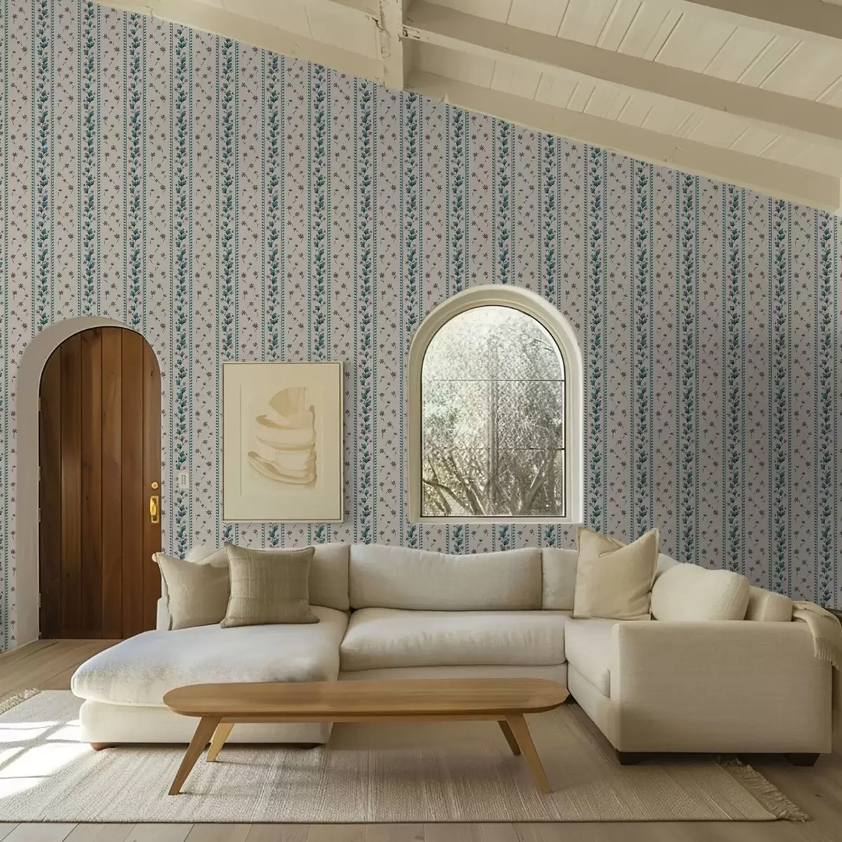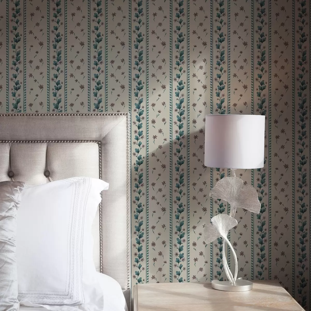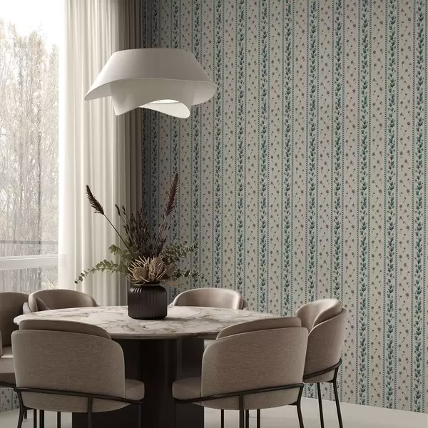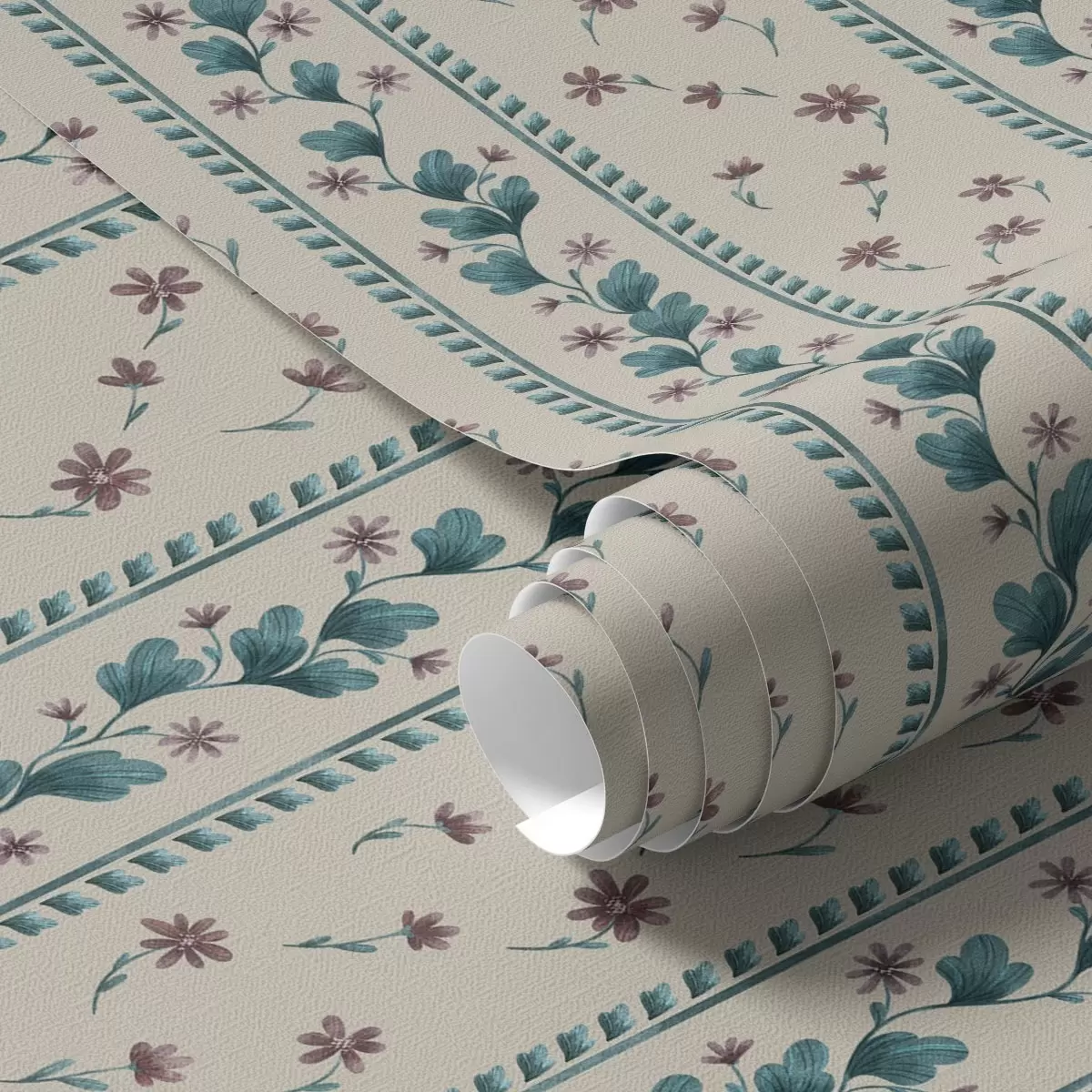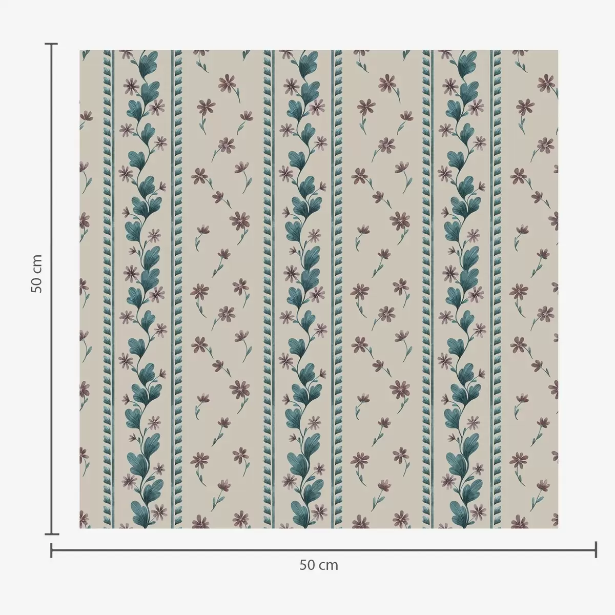 Тапет Вертикални флорални ивици в синьо-кафяви тонове Nr. a00811v1