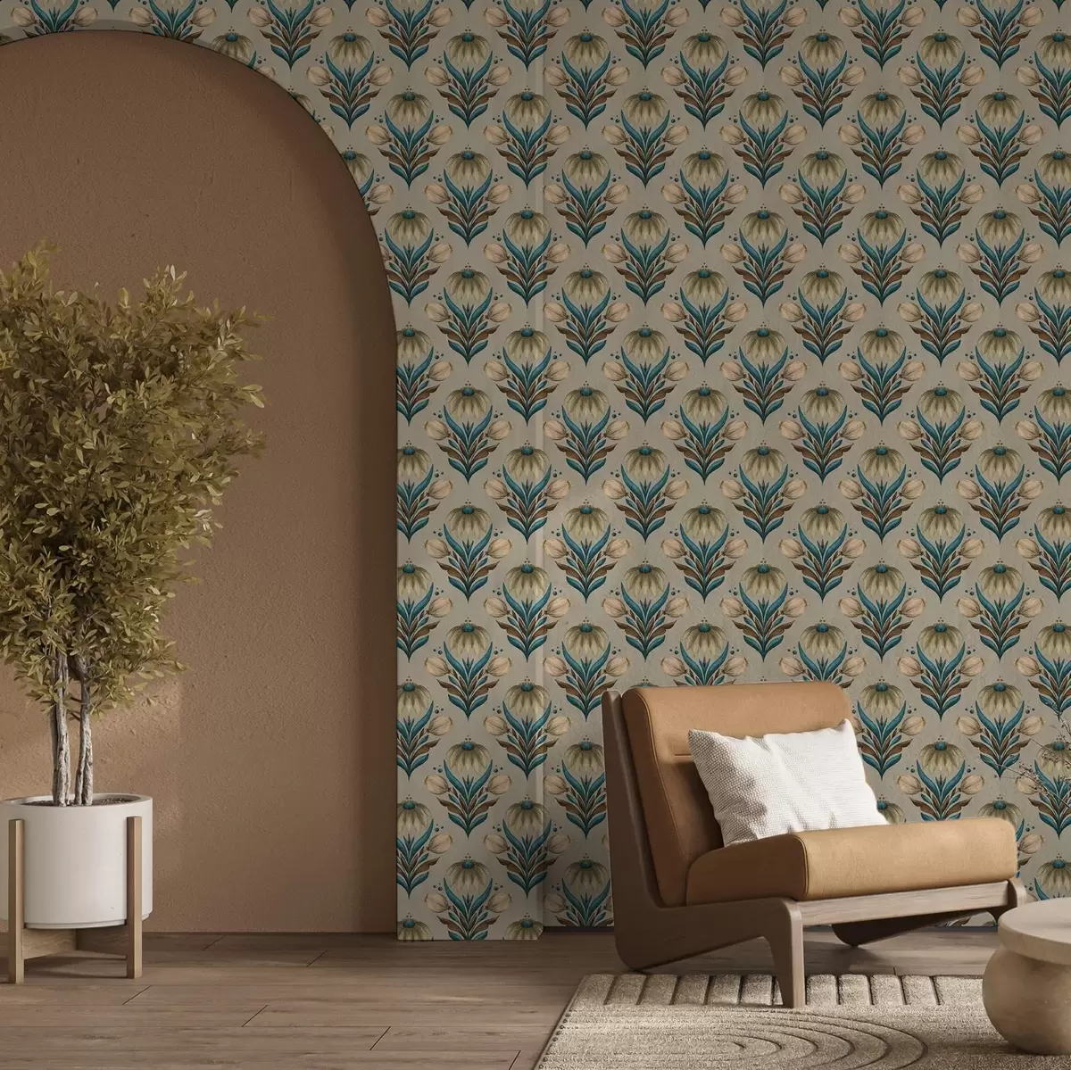 Тапет Симетричен флорален орнамент в топли тонове Nr. a00812