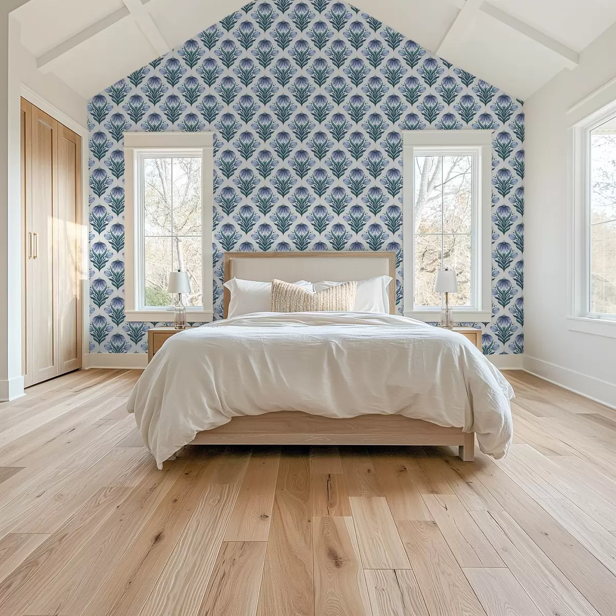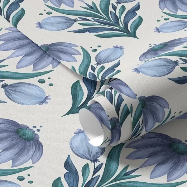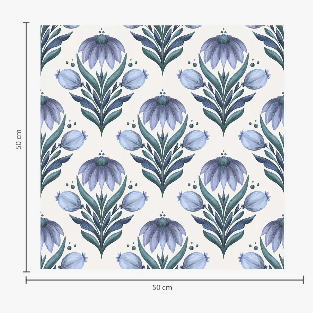 Тапет Симетричен флорален орнамент в синьо-бели нюанси Nr. a00812v2