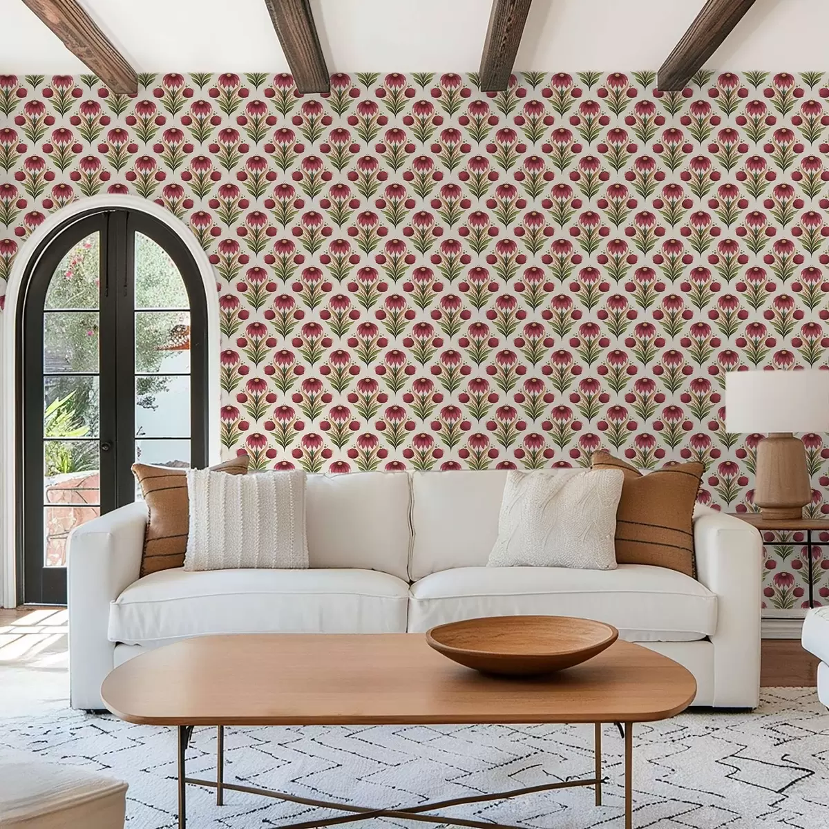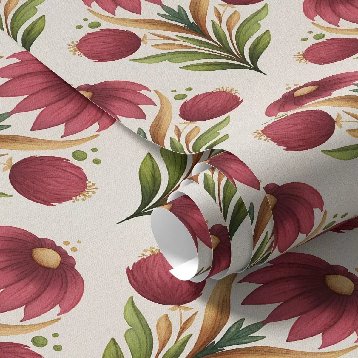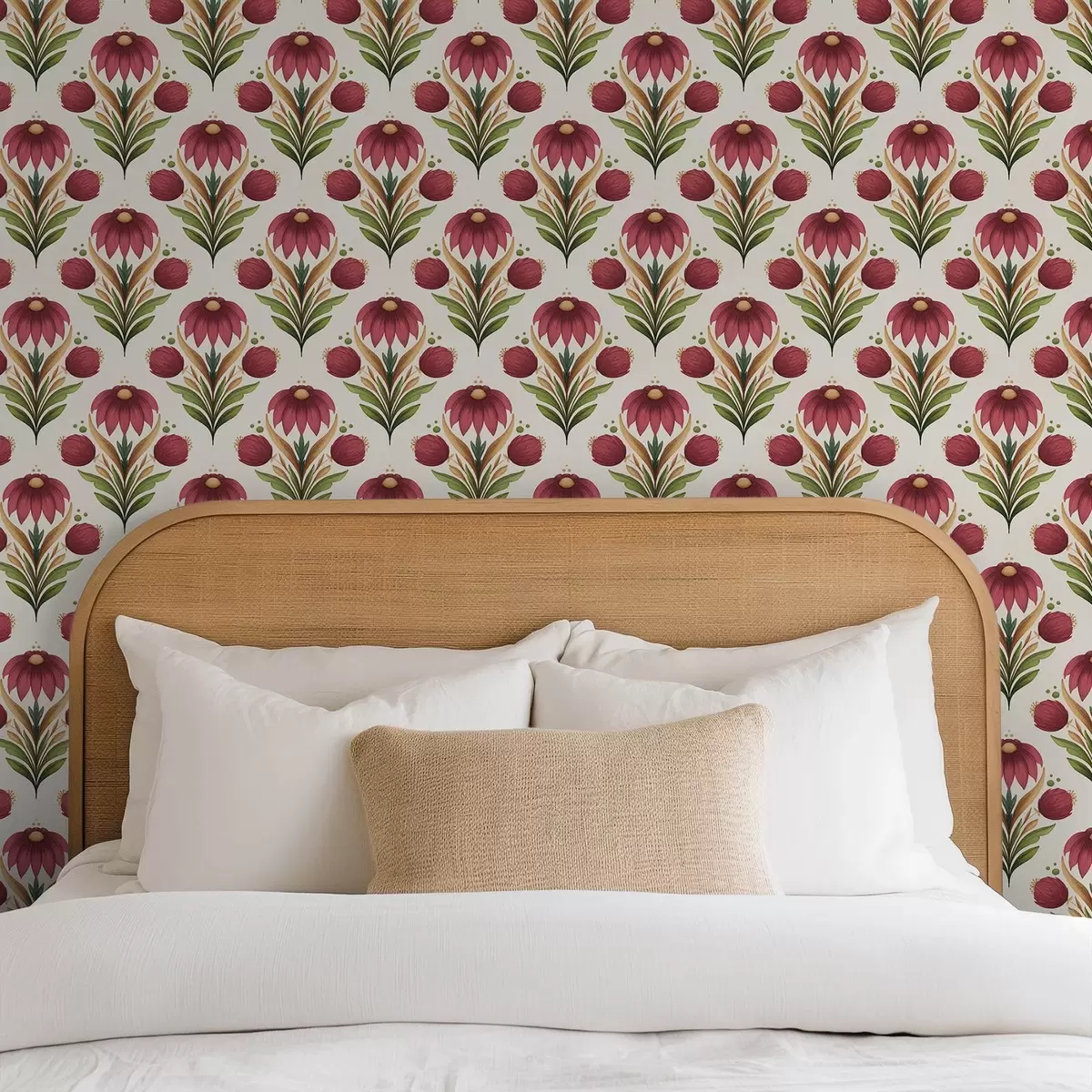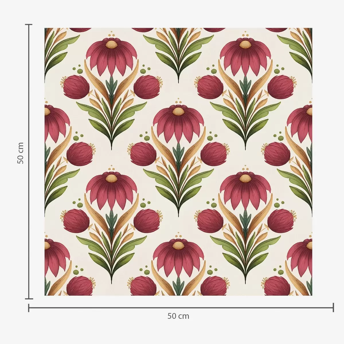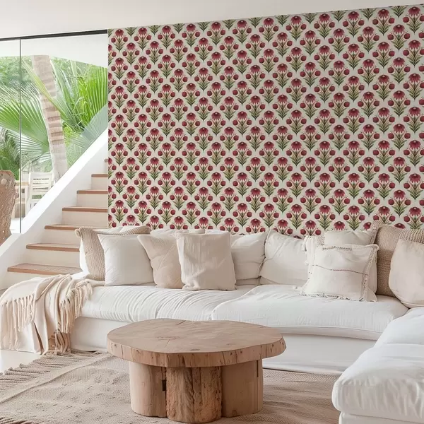 Тапет Симетричен флорален орнамент в наситени червено-зелени тонове Nr. a00812v4