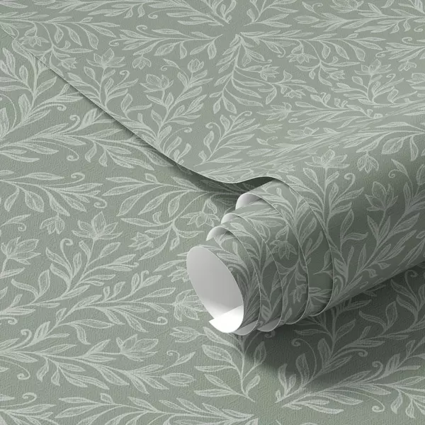 Тапет Ботаничен дамаск на ментово-маслинено фоново Nr. a00815