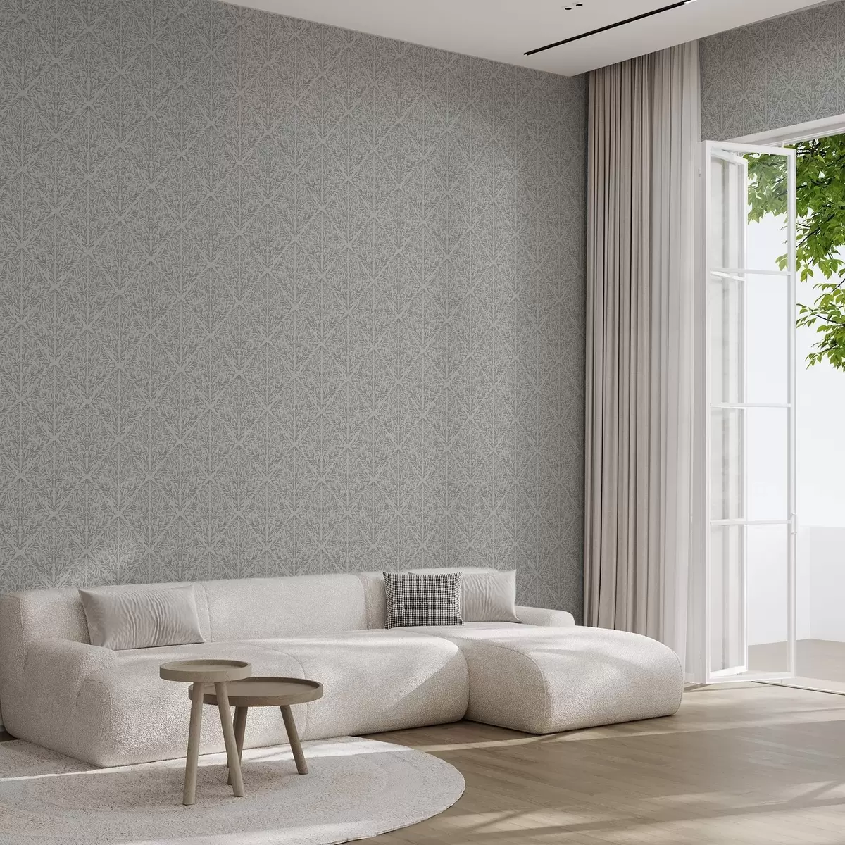 Тапет Ботанически дамаск в светло сиво с меки контури Nr. a00815v2