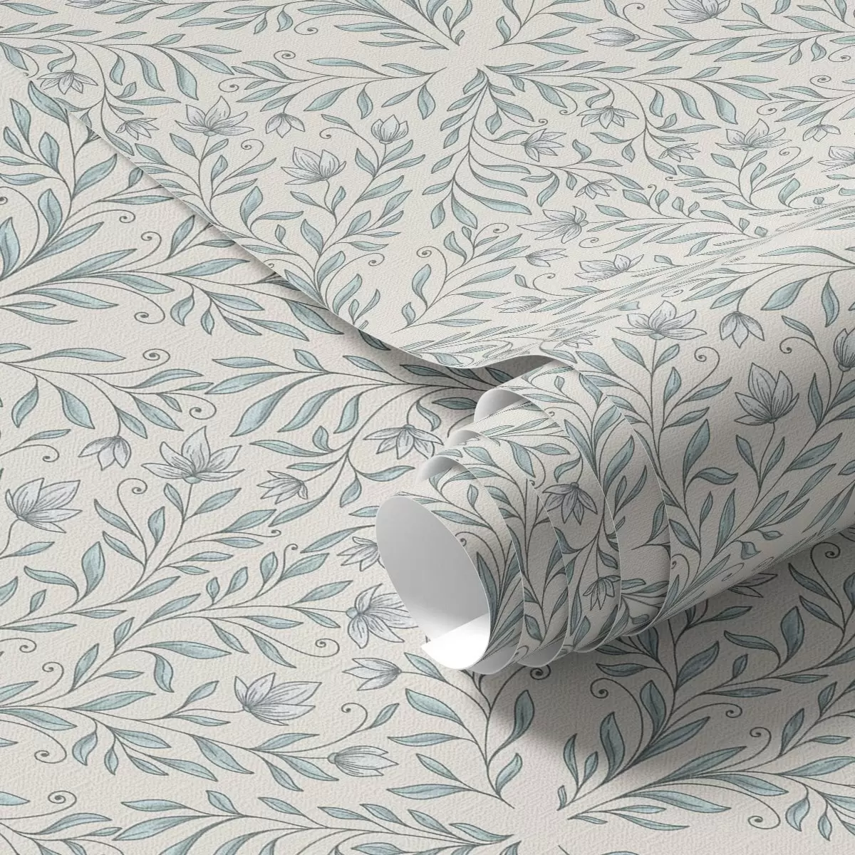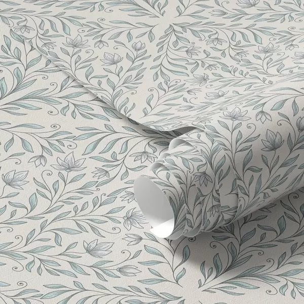 Тапет Дантелени изстрели върху кремаво-бяло с тюркоазен контур Nr. a00815v4
