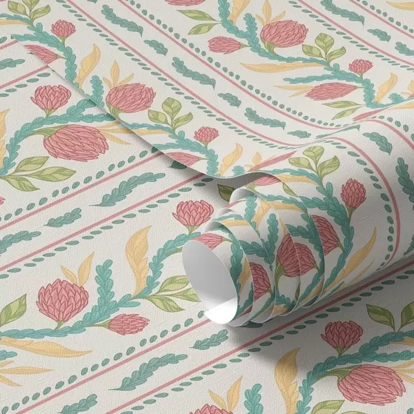 Тапет Ивици с коралови пъпки на светлокремав фон Nr. a00816v1