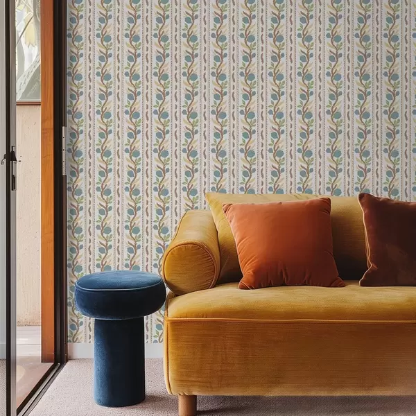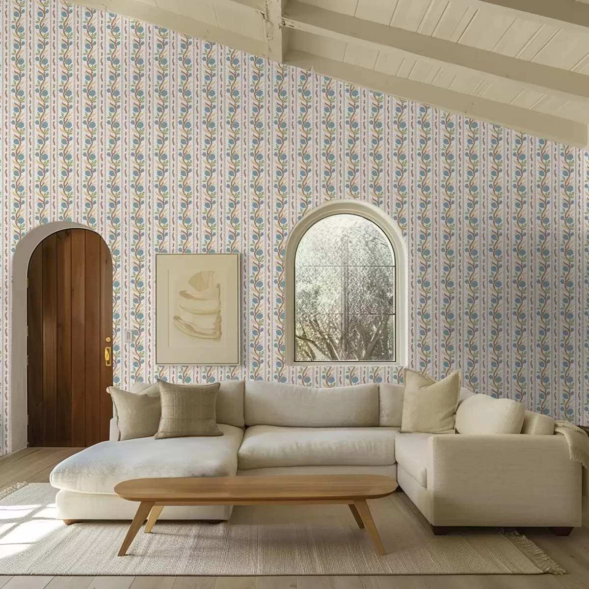 Тапет Вертикални ивици с сини цветя Nr. a00816v2