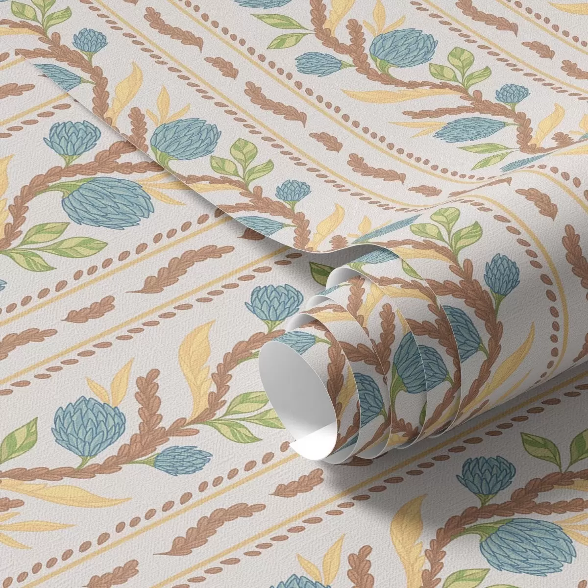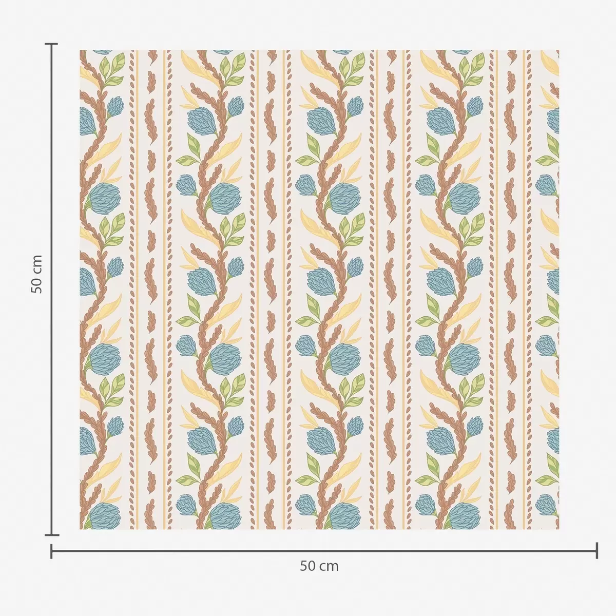 Тапет Вертикални ленти с букет от сини цветя на топъл фон Nr. a00816v3