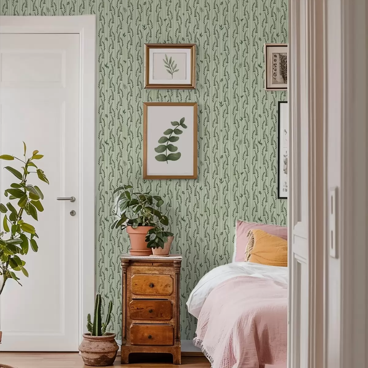 Тапет Гъста зелена трева и издънки на мента с ивици Nr. a00819