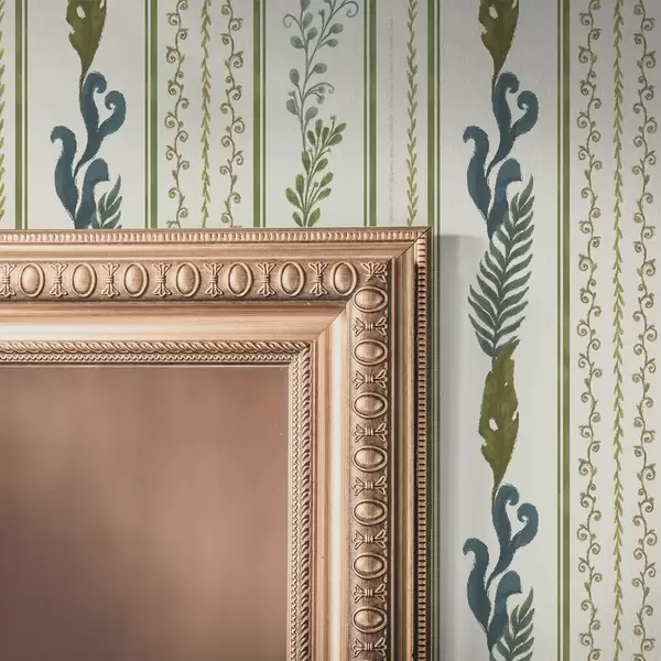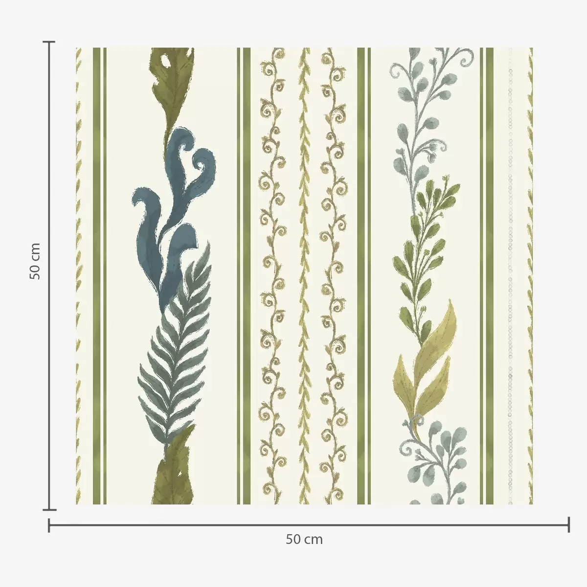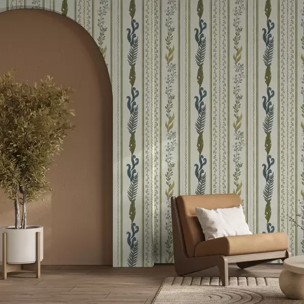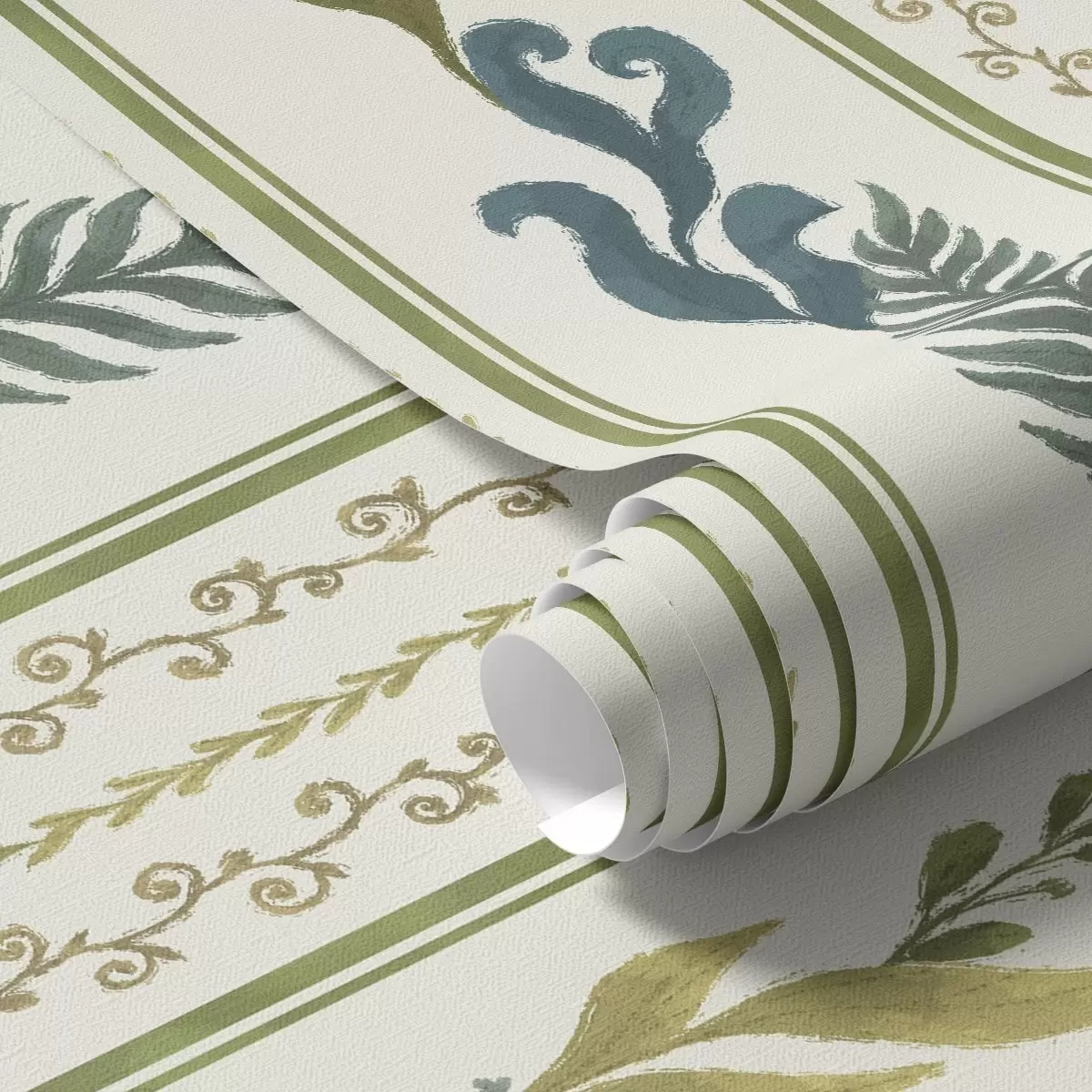 Тапет Ивици с орнамент от спирали и големи клони в зелени цветове Nr. a00823
