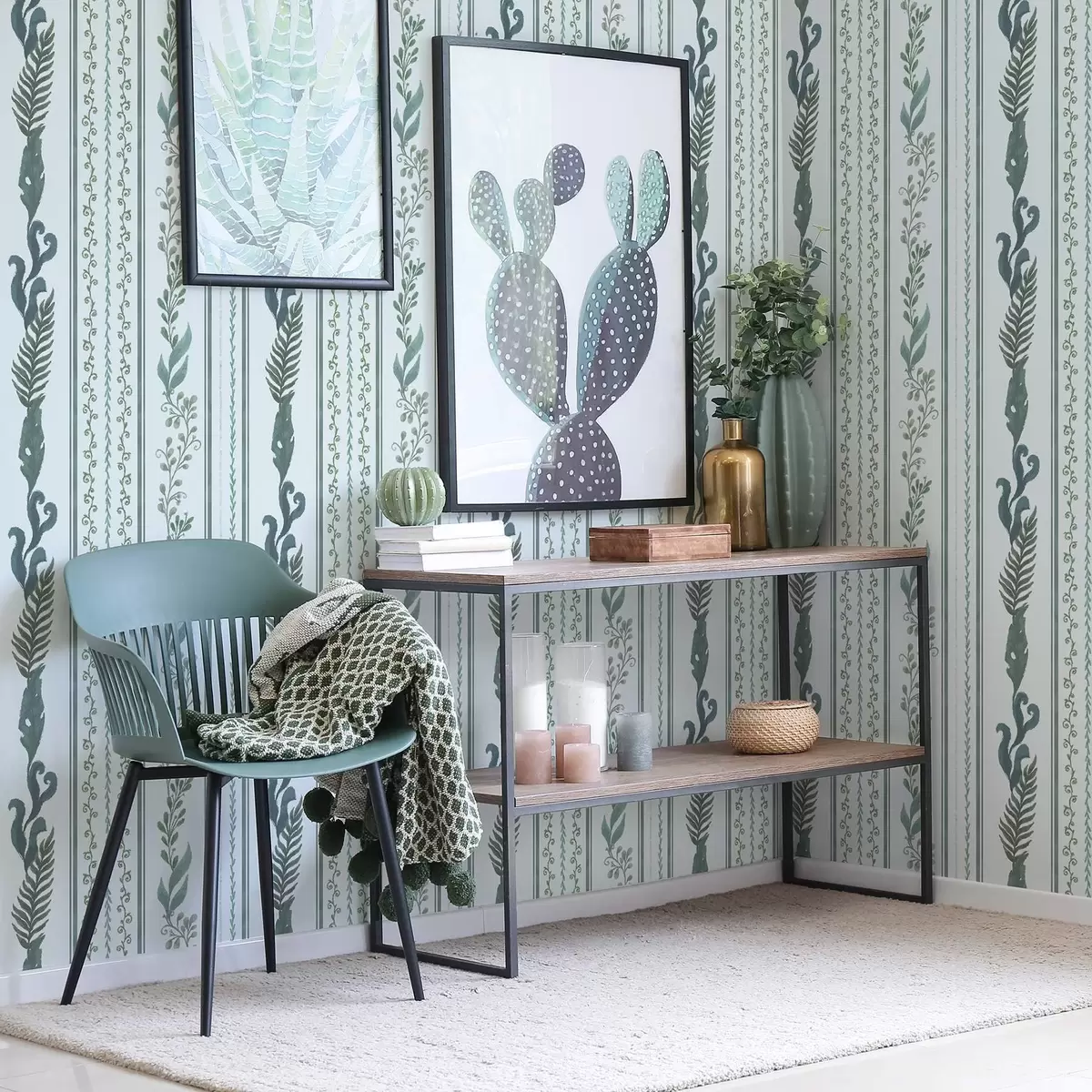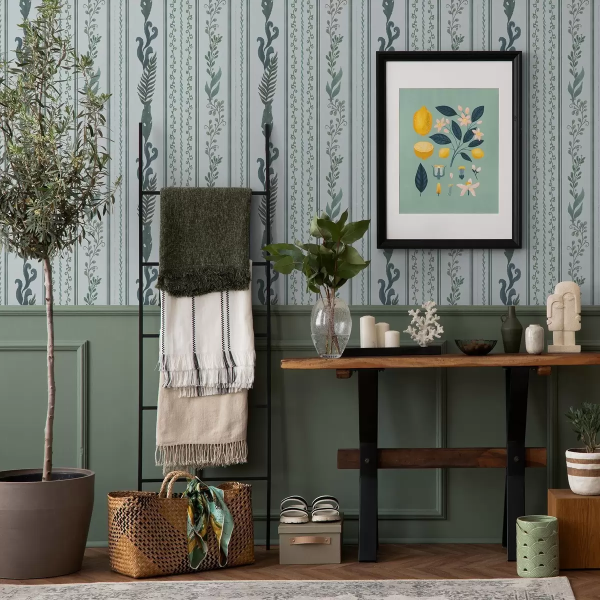 Тапет Ивици с клонки и къдрици на хладно светло синьо Nr. a00823v1
