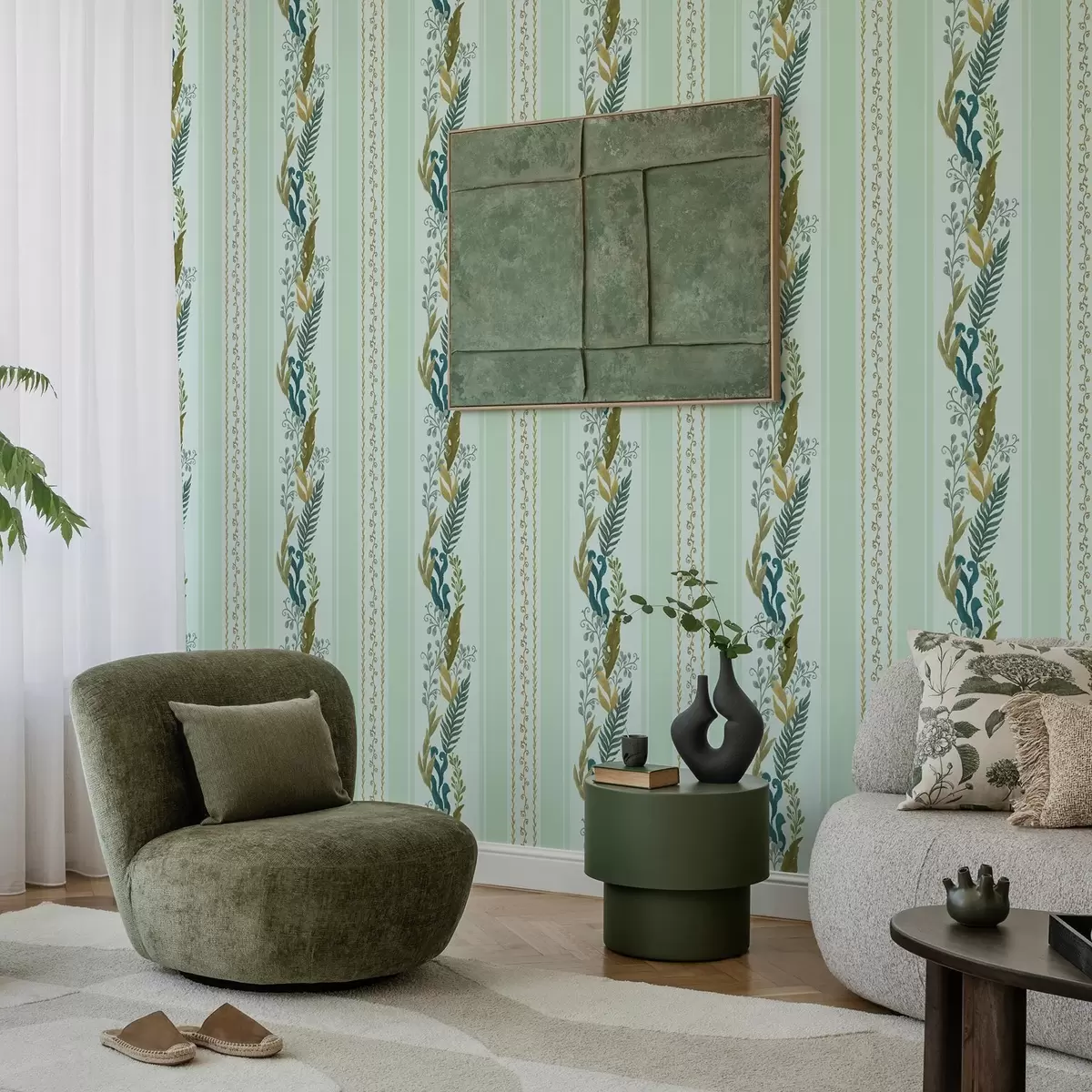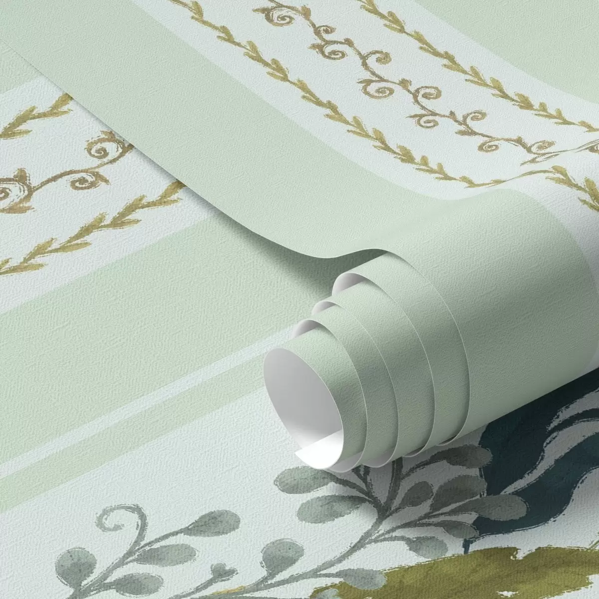 Тапет Широки ивици с живописни клони върху мека мента Nr. a00825v1