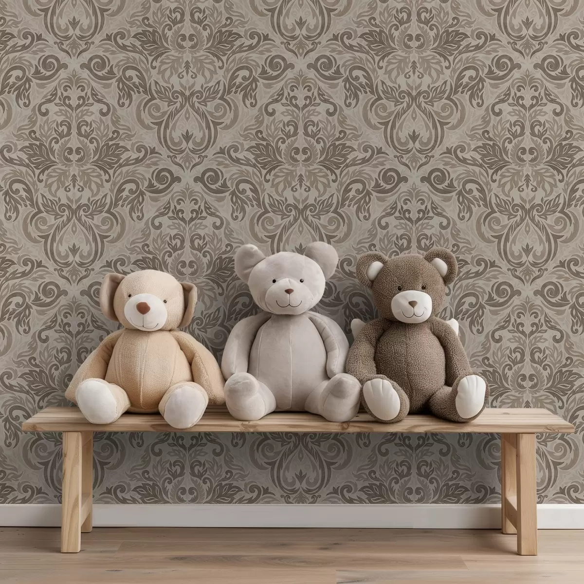 Тапет Дамаска в топли сиво-кафяви тонове върху светъл фон Nr. a00826v3