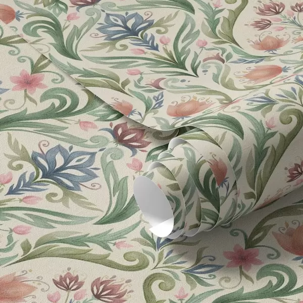 Тапет Симетричен флорален орнамент, теракота и зелено Nr. a00827