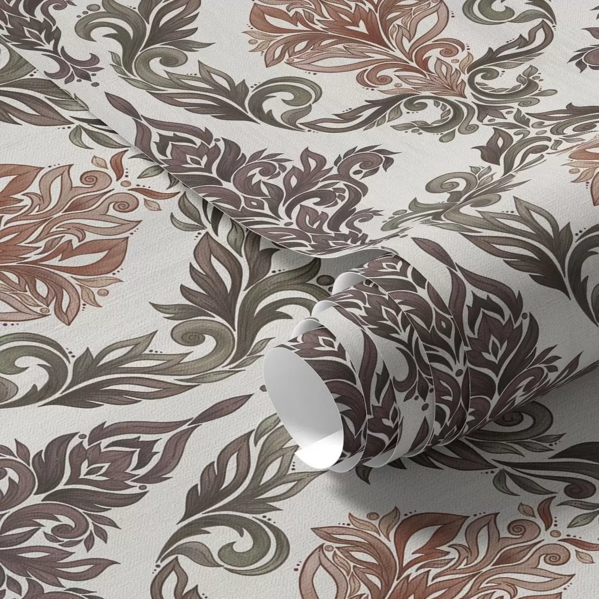 Тапет Дамаска с медно-кафяви акценти върху светъл фон Nr. a00828v4