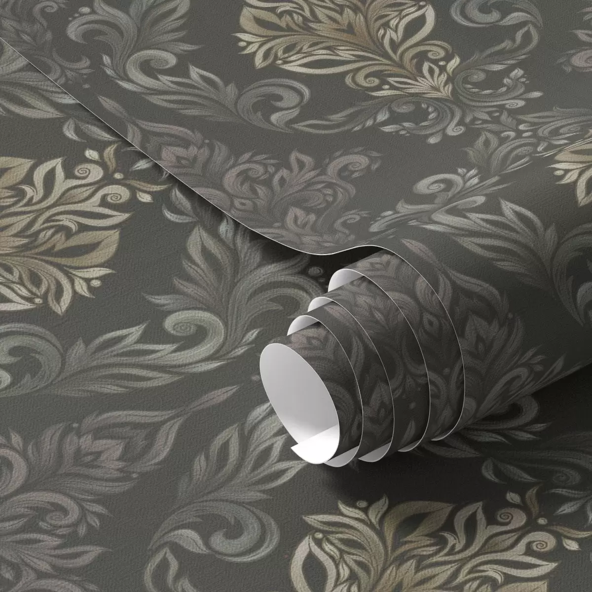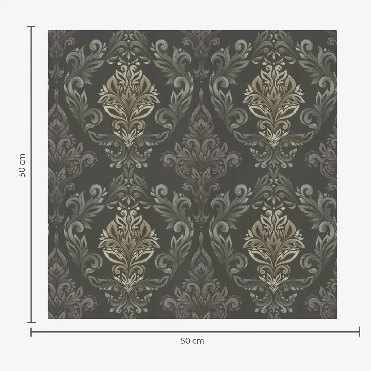 Тапет Дамаска върху тъмно графитен фон, акценти в маслинено-охра Nr. a00828v5