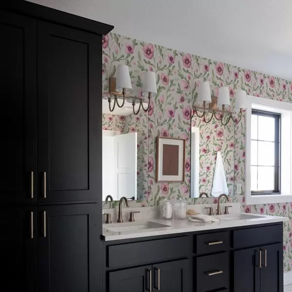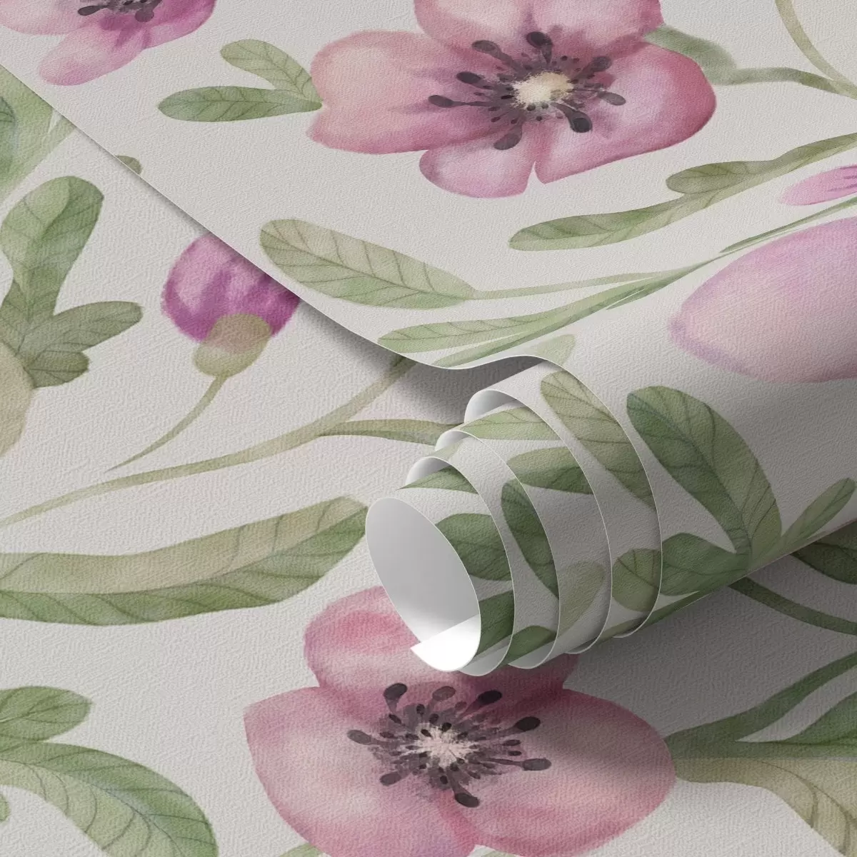 Тапет Нежни розови макове с листа, изработени с акварелна техника Nr. a00830