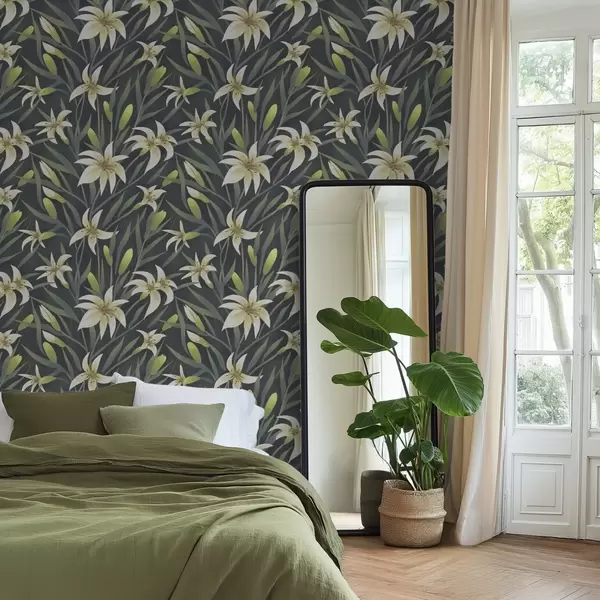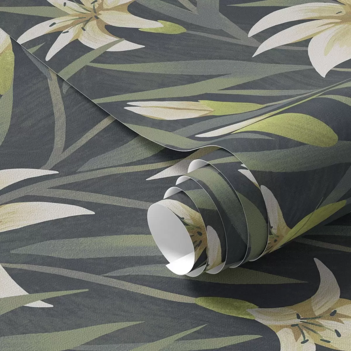 Тапет Кремави лилии с листа на тъмен фон Nr. a00837v1