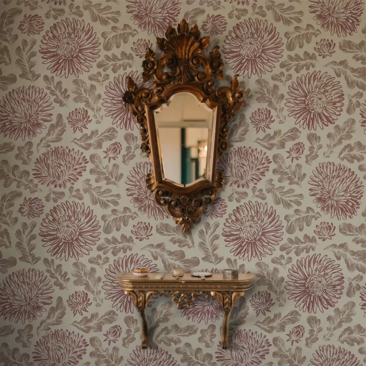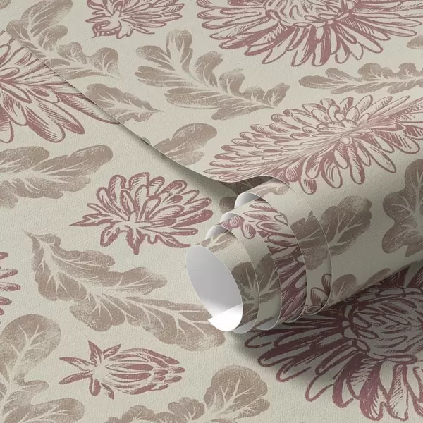 Тапет Хризантеми с винени акценти върху кремаво Nr. a00840v1