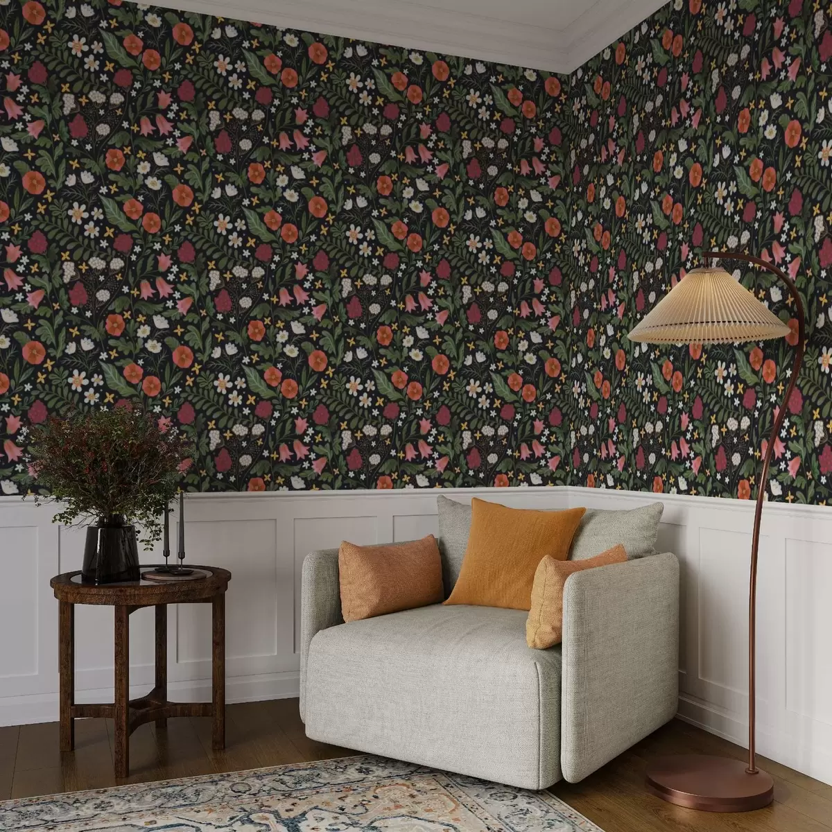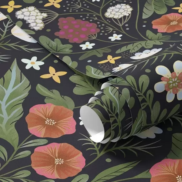Тапет Диви цветя и плодове на тъмно черен фон Nr. a00849v3