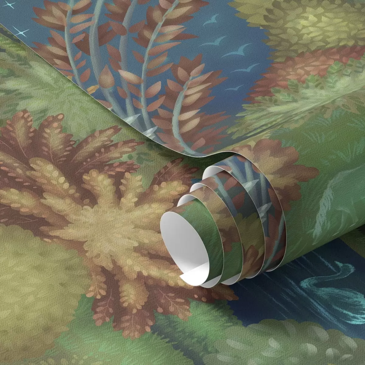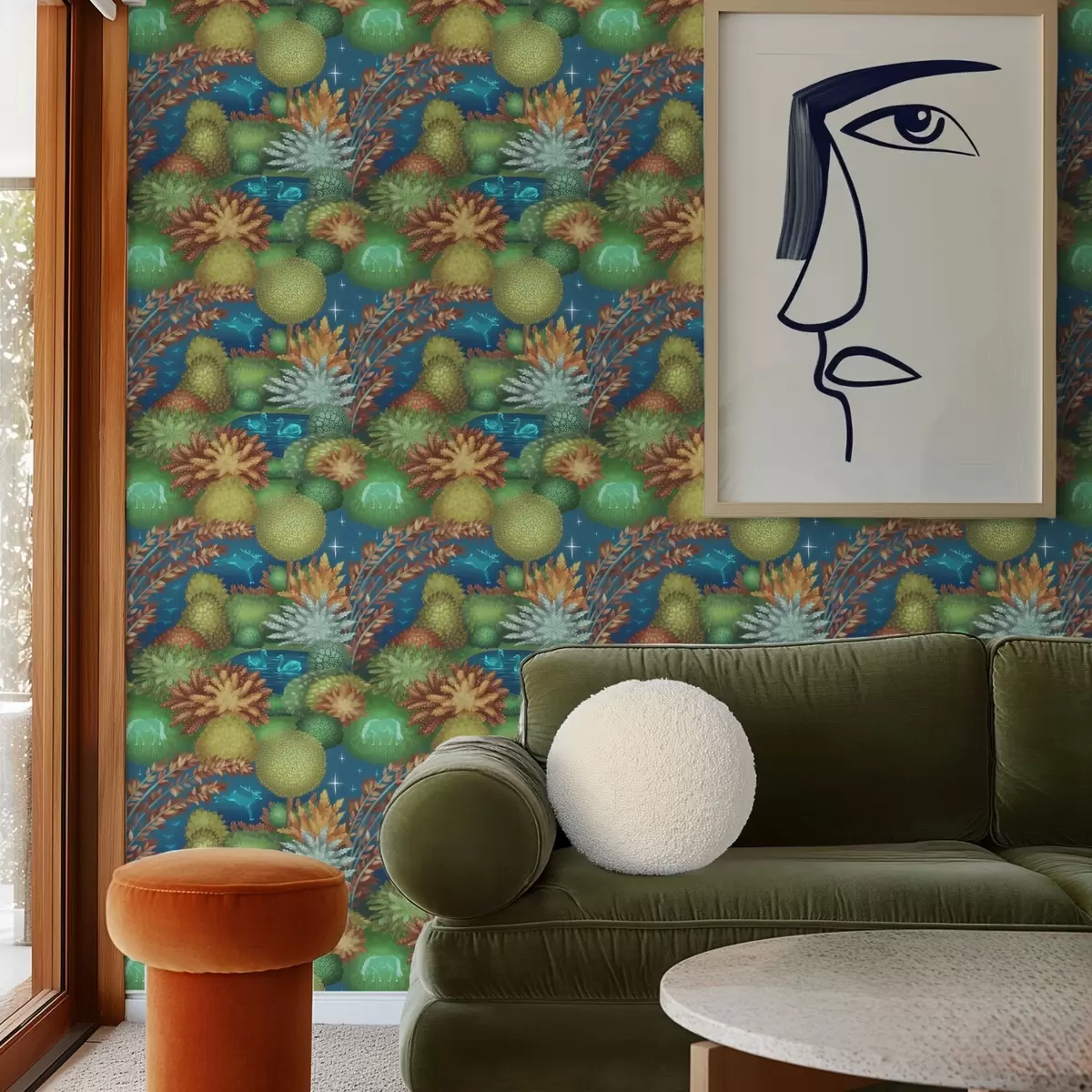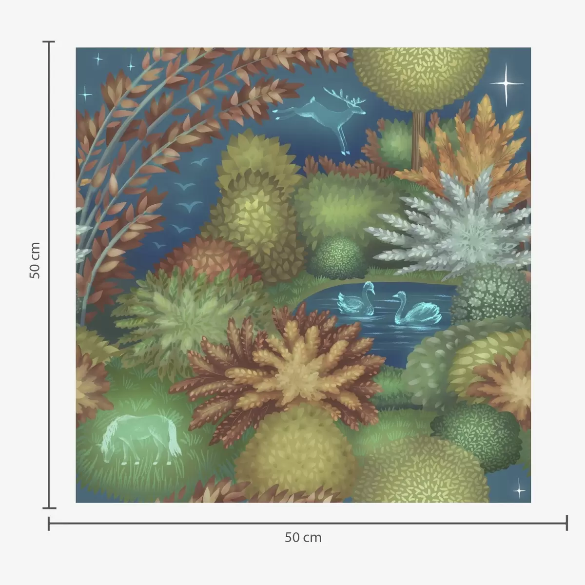 Тапет Приказна нощна градина с езеро и светещи животни Nr. a00851