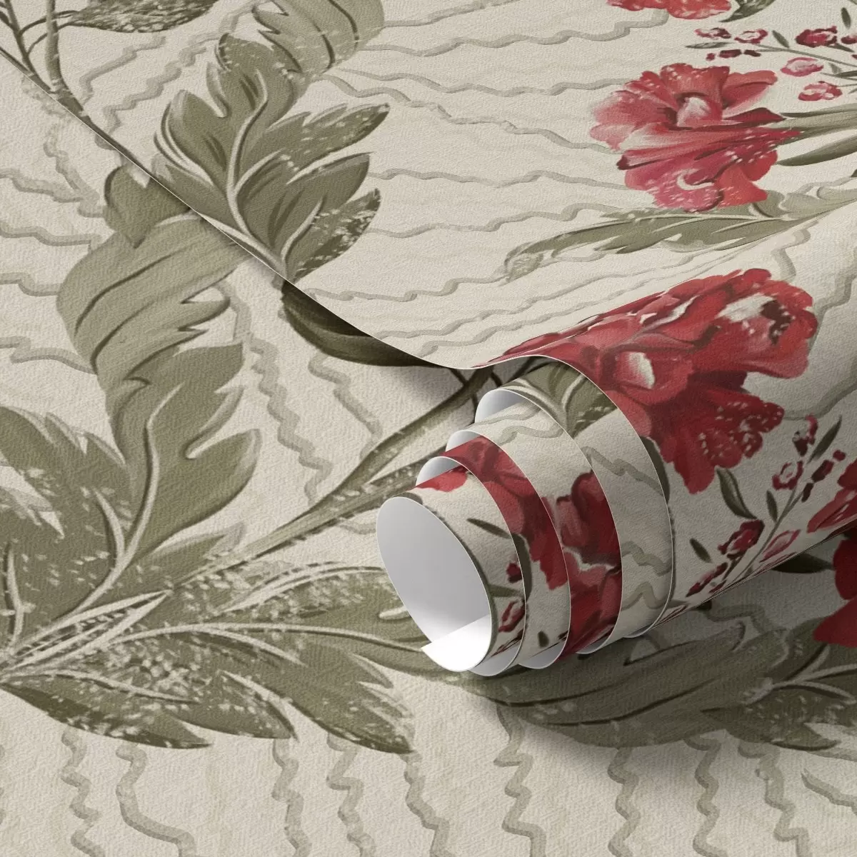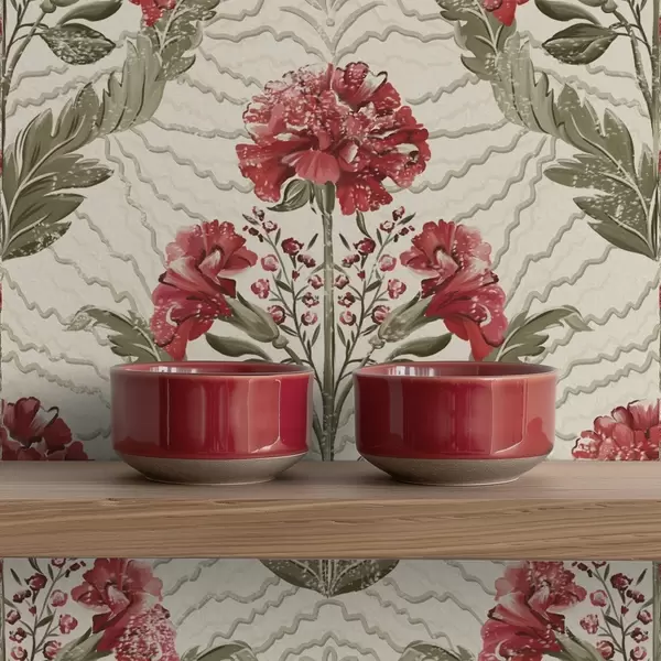 Тапет Големи червени божури с графичен фон, кремаво фоново покритие Nr. a00857