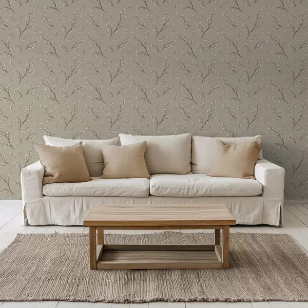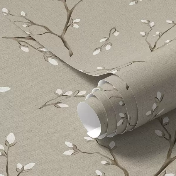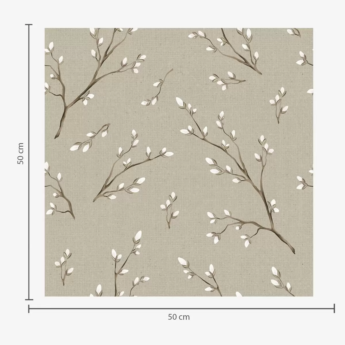 Тапет Клонки с бели пъпки на ленен кафяв фон Nr. a00861