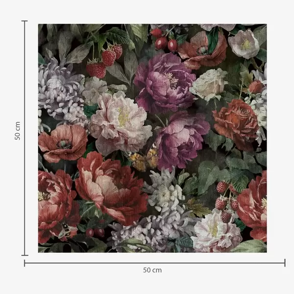 Тапет Тъмни драматични божури, плодове и пеперуда на черен фон Nr. a00862