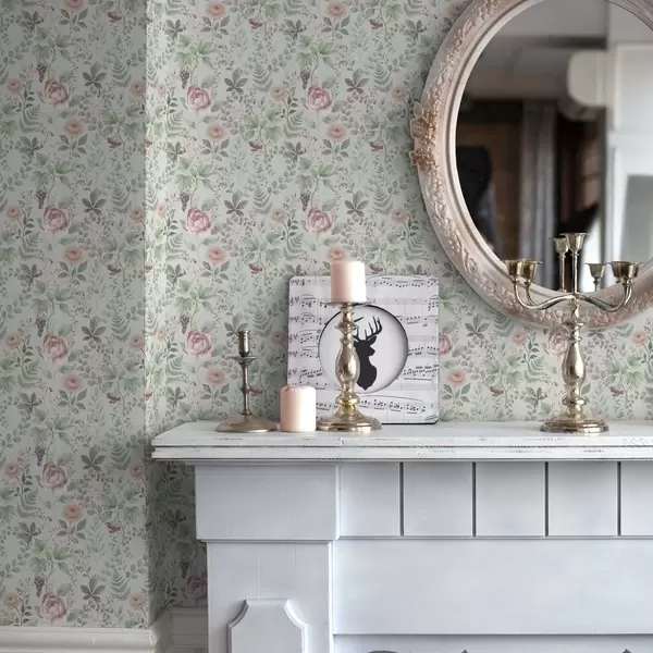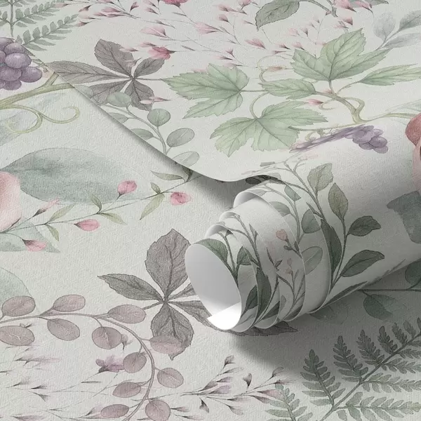 Тапет Пастелна градина с рози, папрати и грозде Nr. a00867