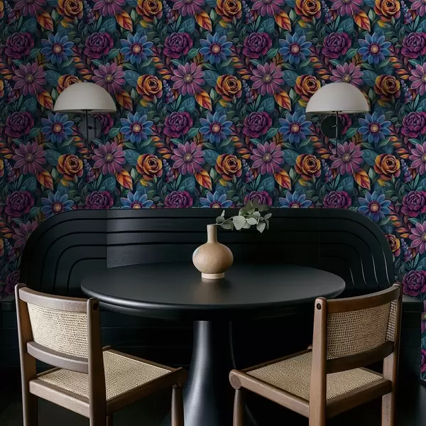 Тапет Ярки цветя в бижутерийни тонове върху тъмно син фон Nr. a00871