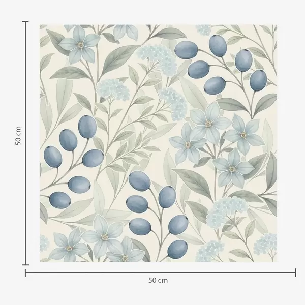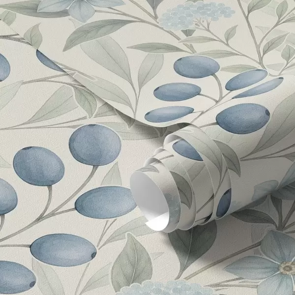 Тапет Сини плодове и светли цветя върху слонова кост Nr. a00872