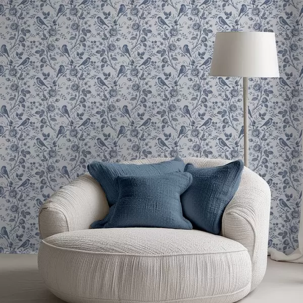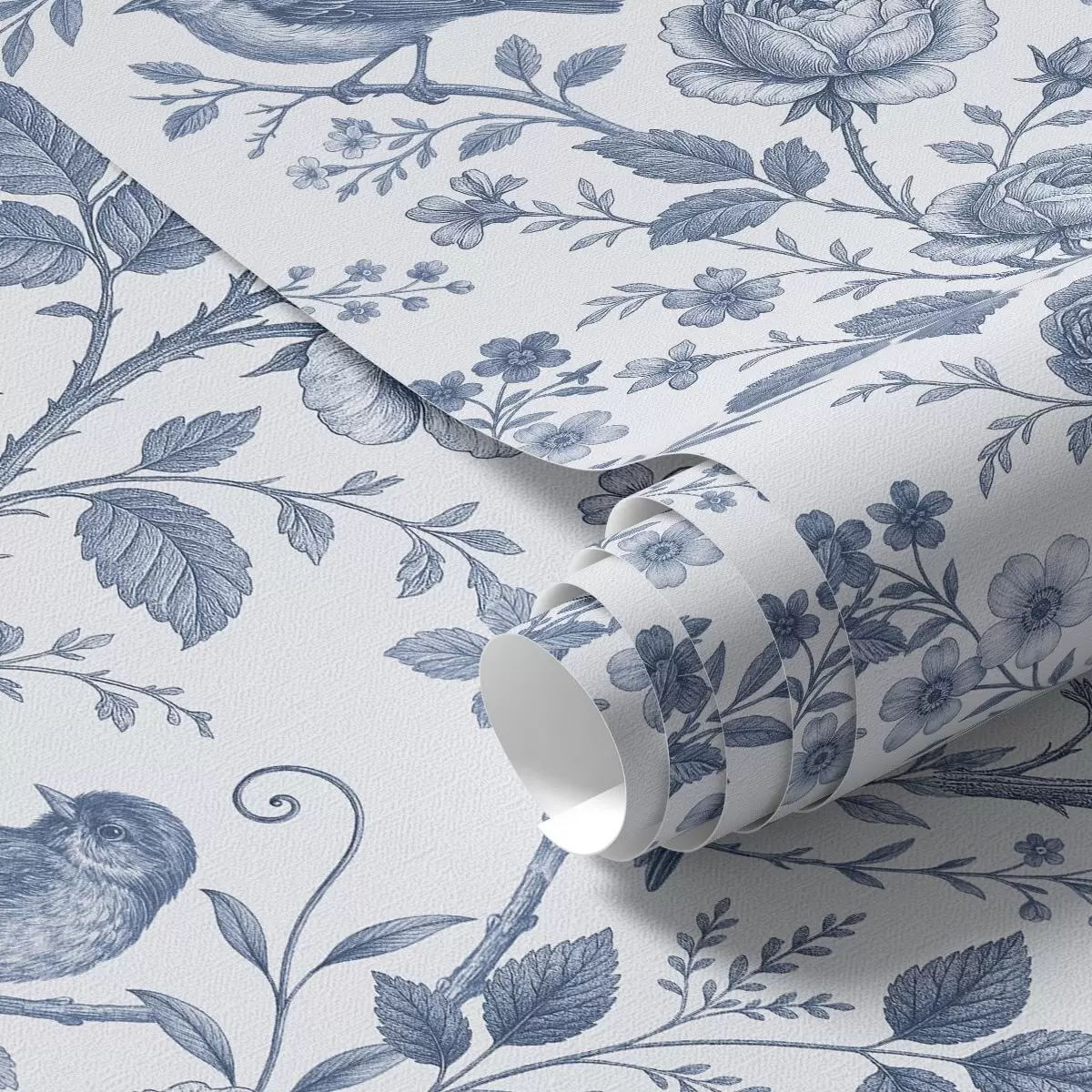 Тапет Сини птици и рози върху бял фон Nr. a00873