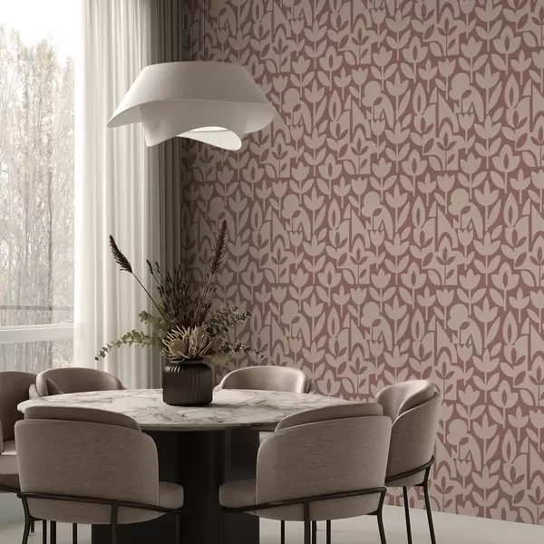 Тапет Геометрични флорални силуети в теракота и кремаво Nr. a00875v2