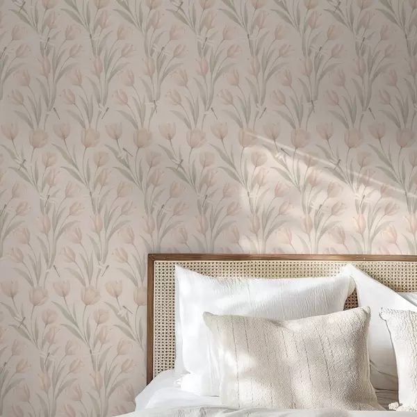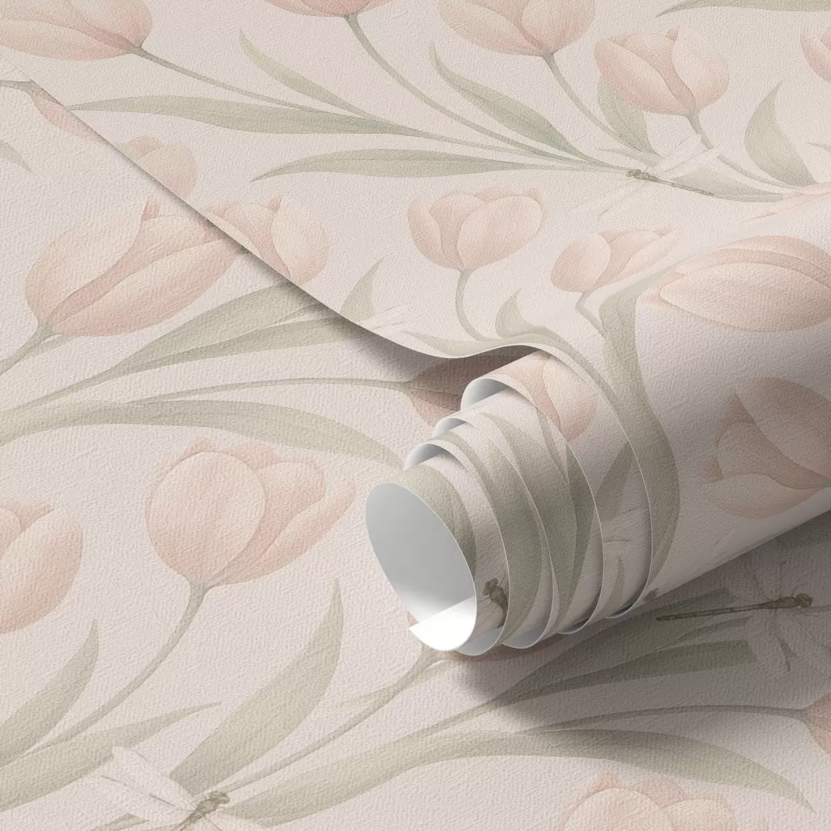 Тапет Пастелни лалета с водни кончета на розово Nr. a00876