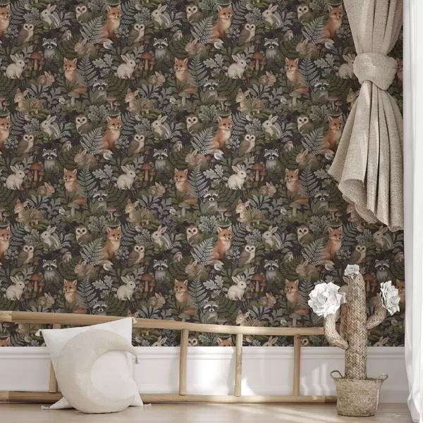 Тапет Горски животни и папрати върху тъмно сиво Nr. a00880