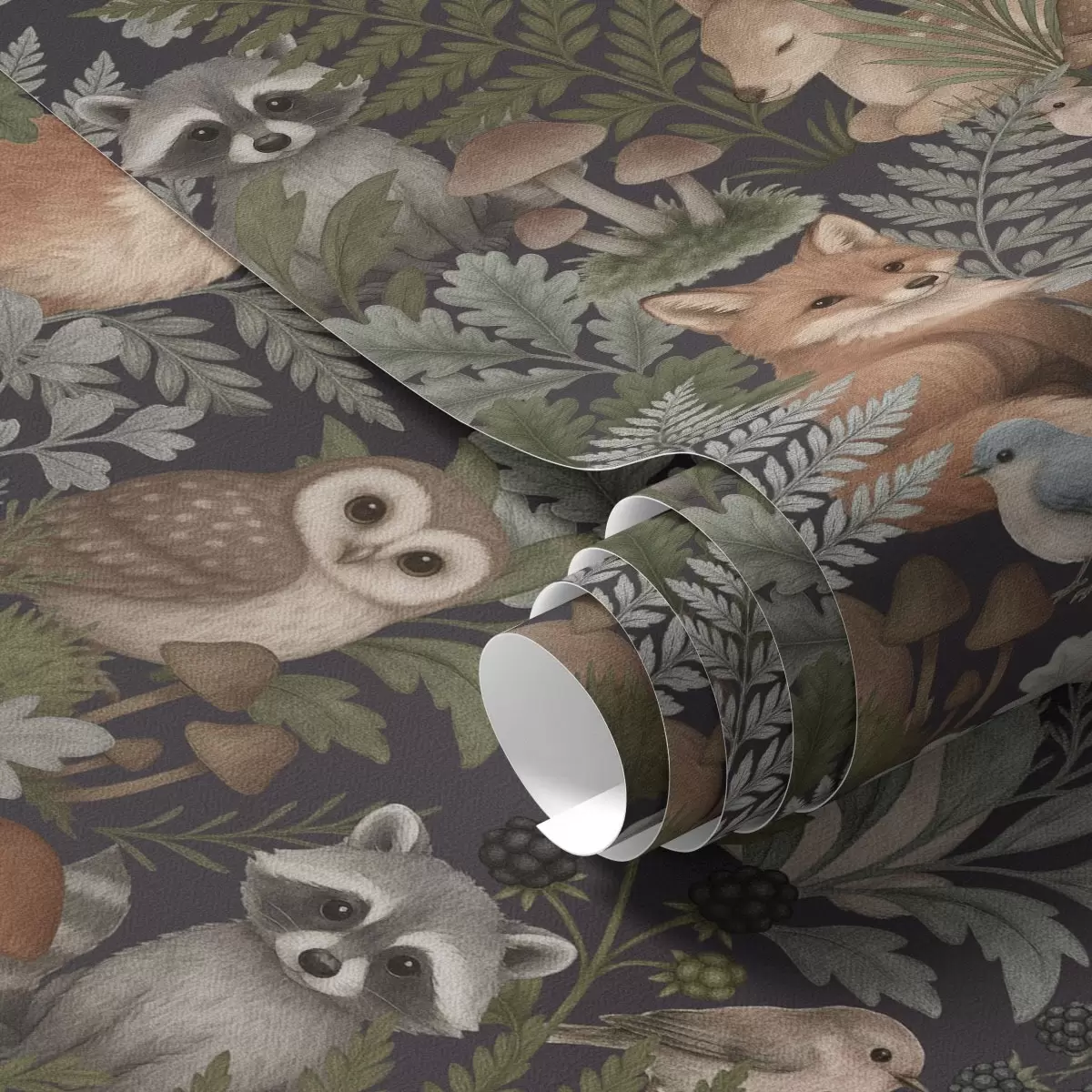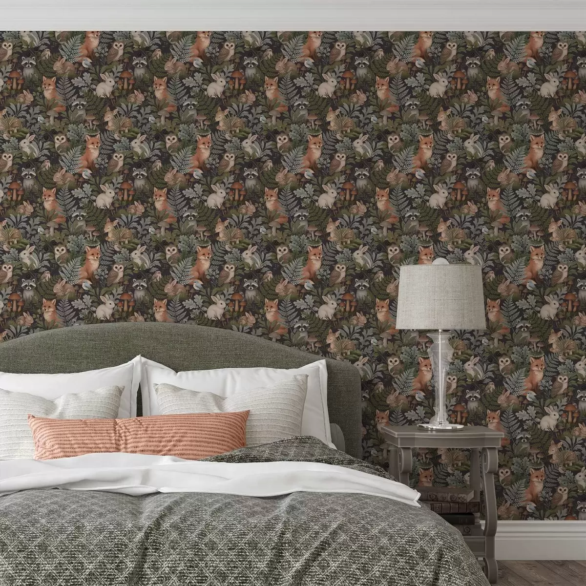 Тапет Горски животни и папрати върху тъмно сиво Nr. a00880