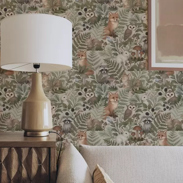 Тапет Горски животни, папрати и гъби на светлобежов фон Nr. a00880v1