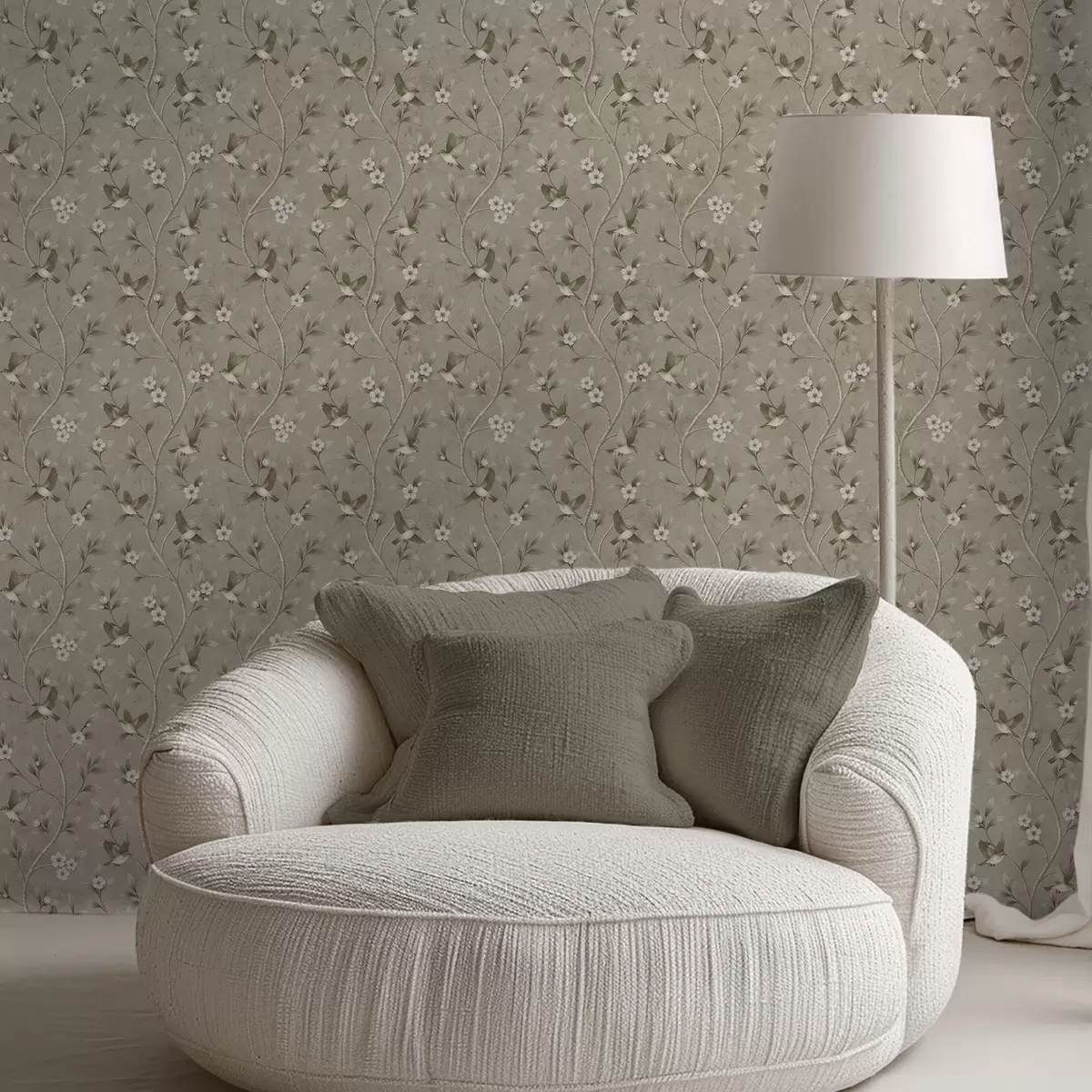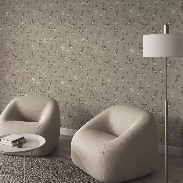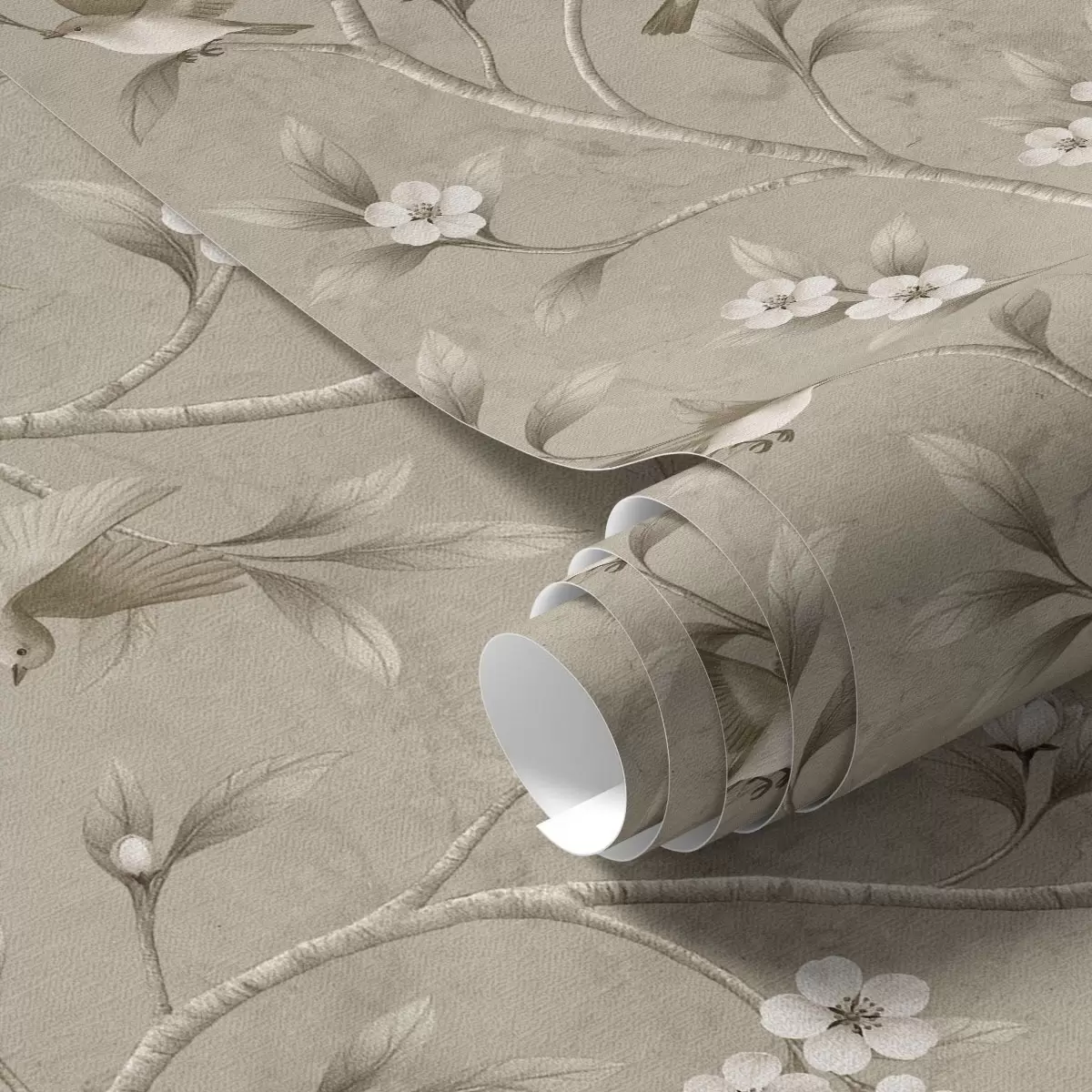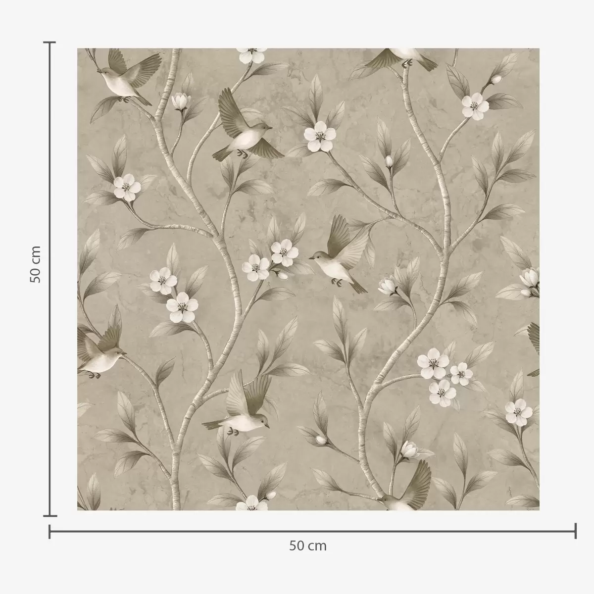 Тапет Птици и цъфтящи клони в топли сепийни тонове Nr. a00882