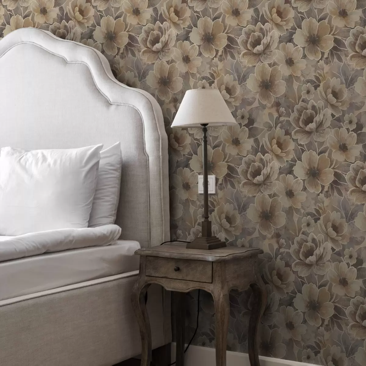 Тапет Живописни бежови цветя на димен абстрактен фон Nr. a00884