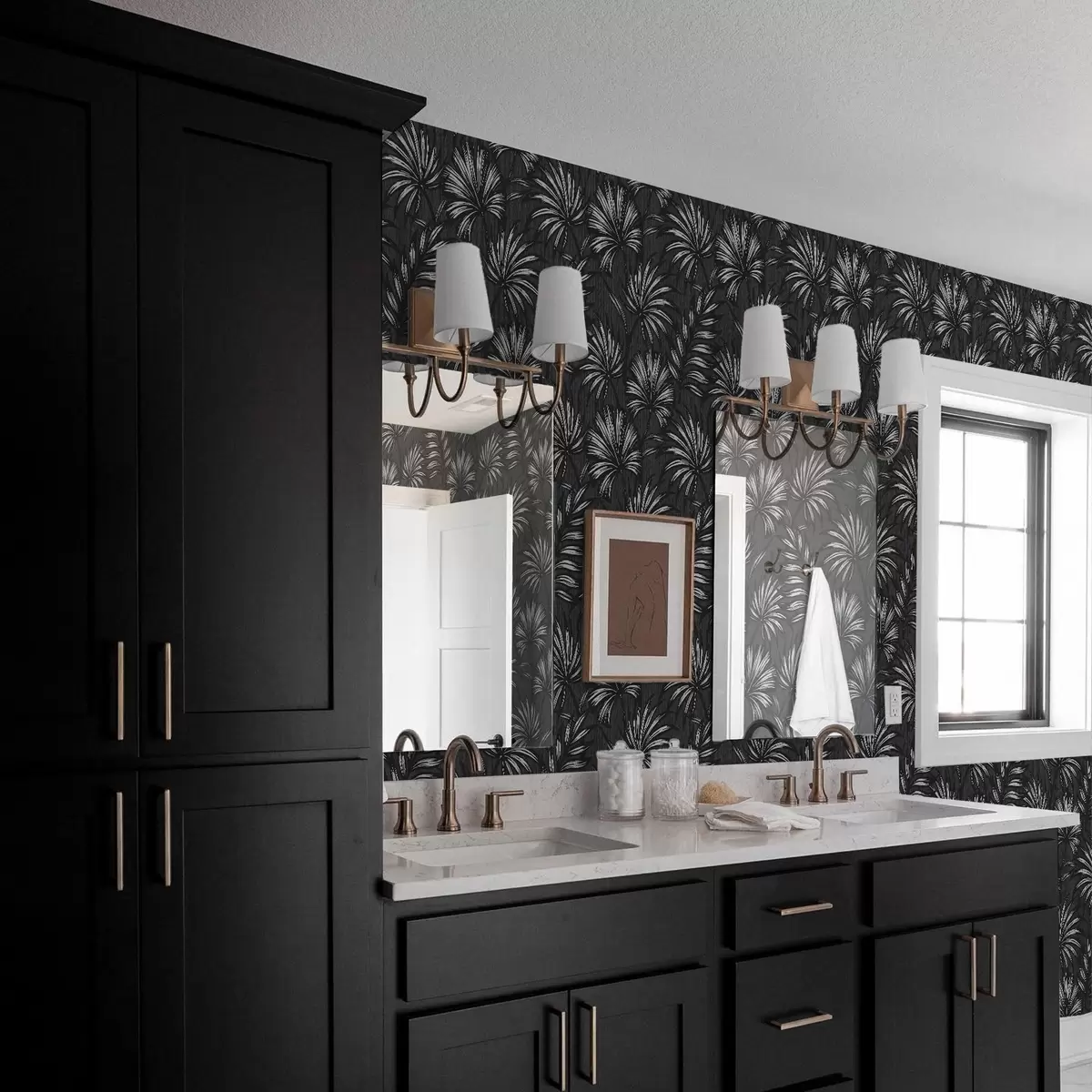 Тапет Черно-бели палмови листа на тъмен фон Nr. a00891