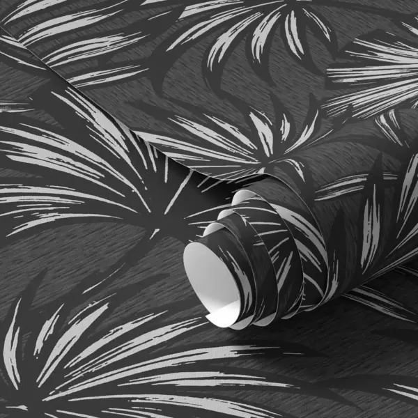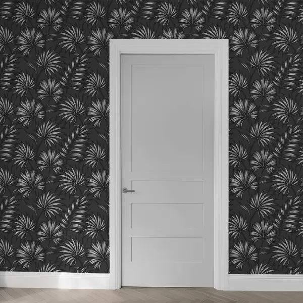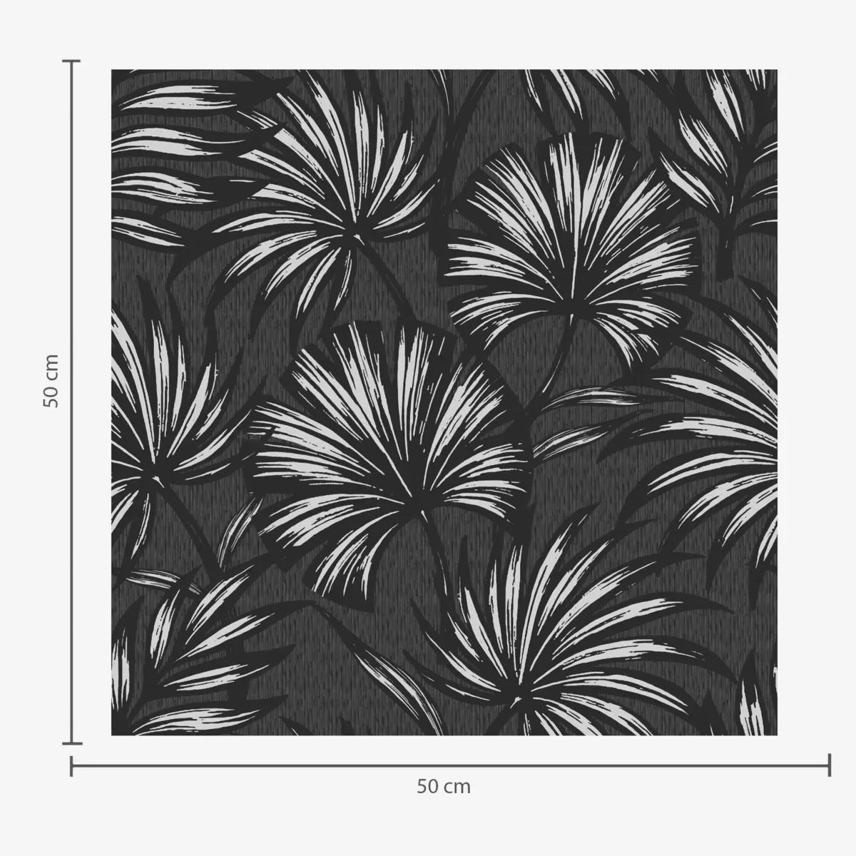 Тапет Черно-бели палмови листа на тъмен фон Nr. a00891