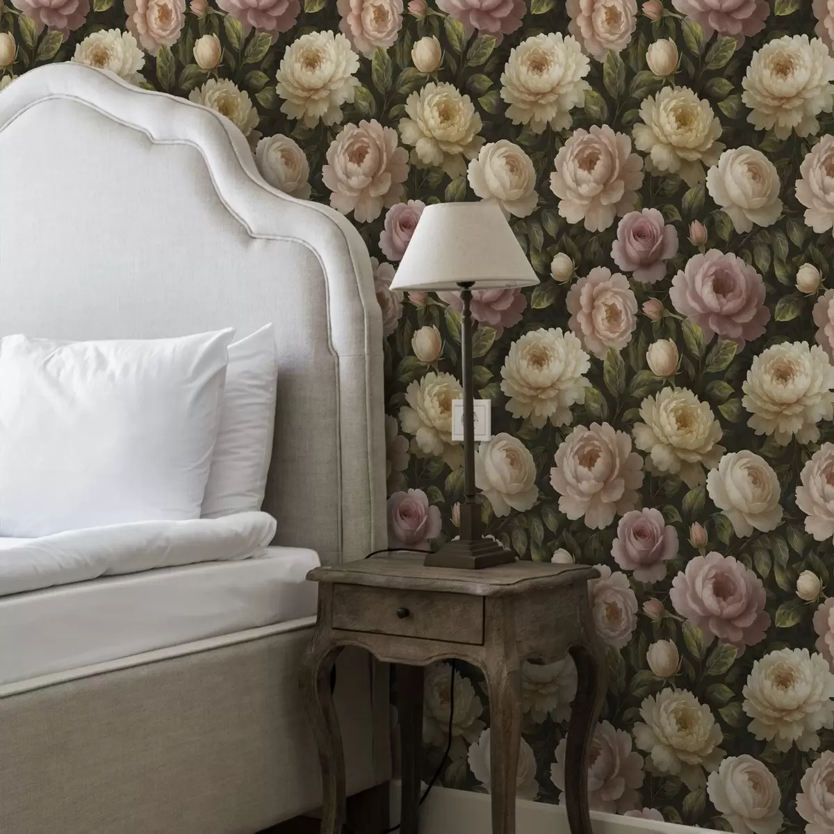 Тапет Романтични божури на тъмен ботанически фон Nr. a00893