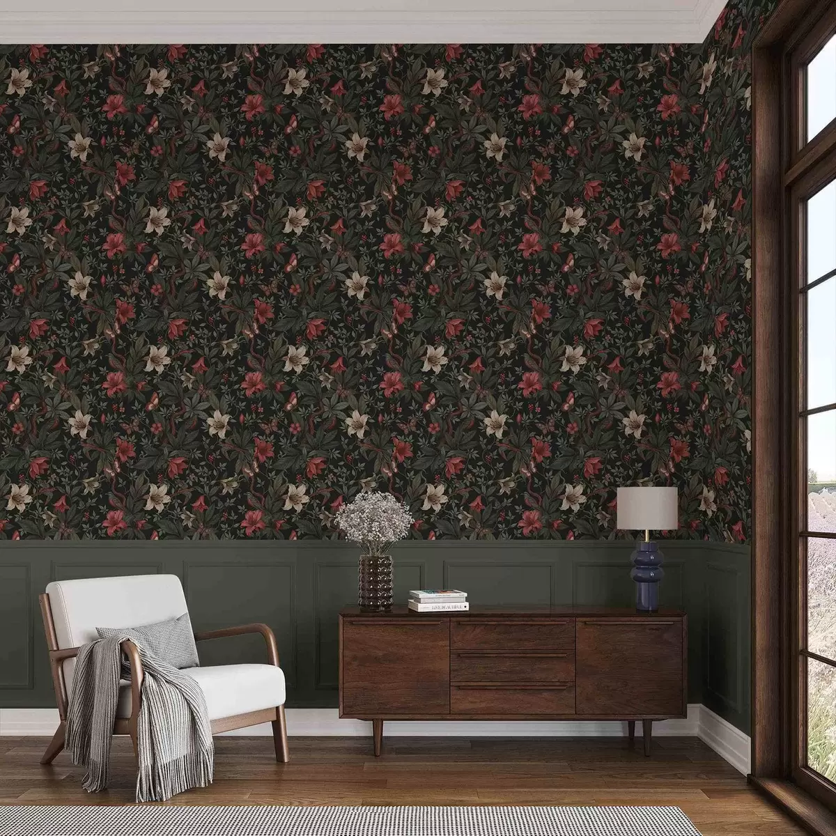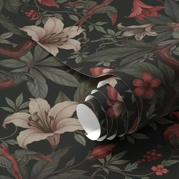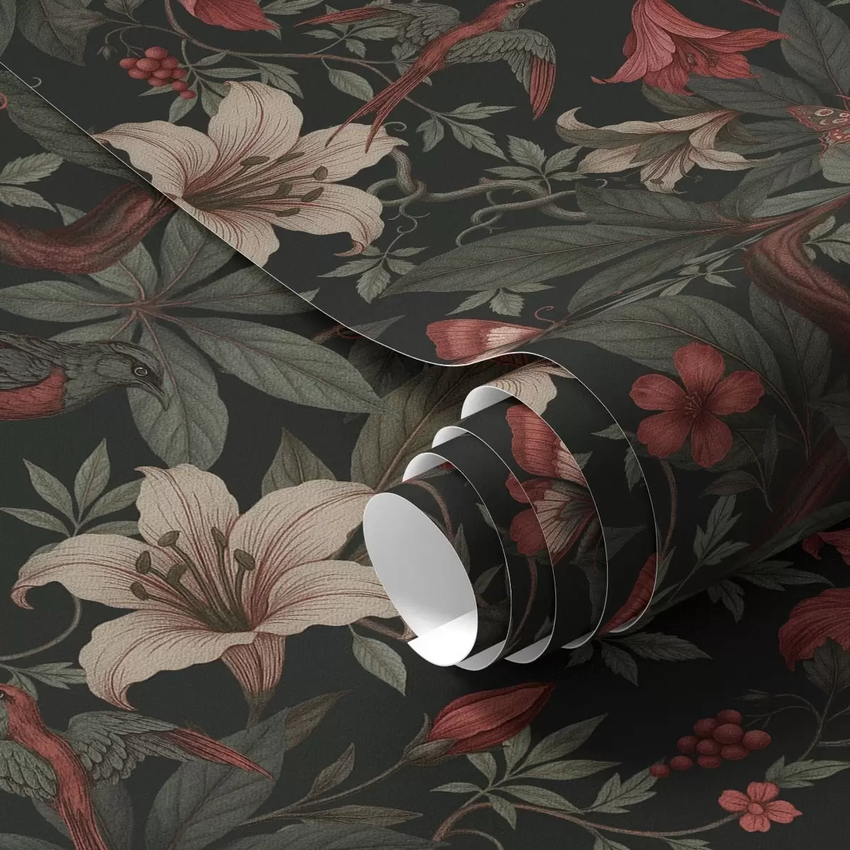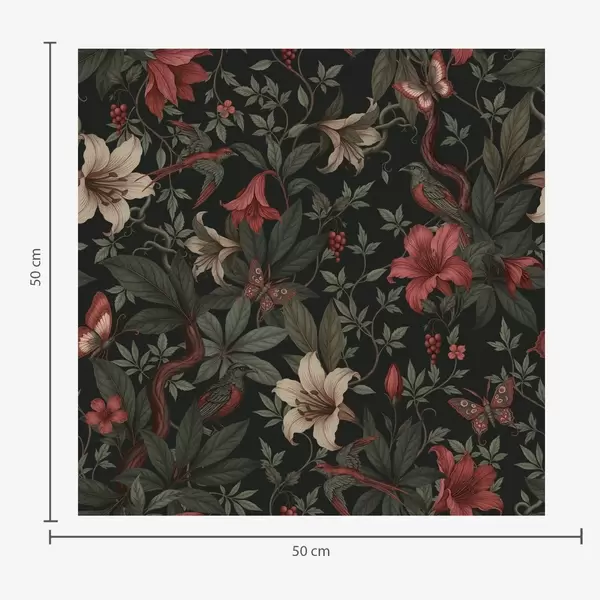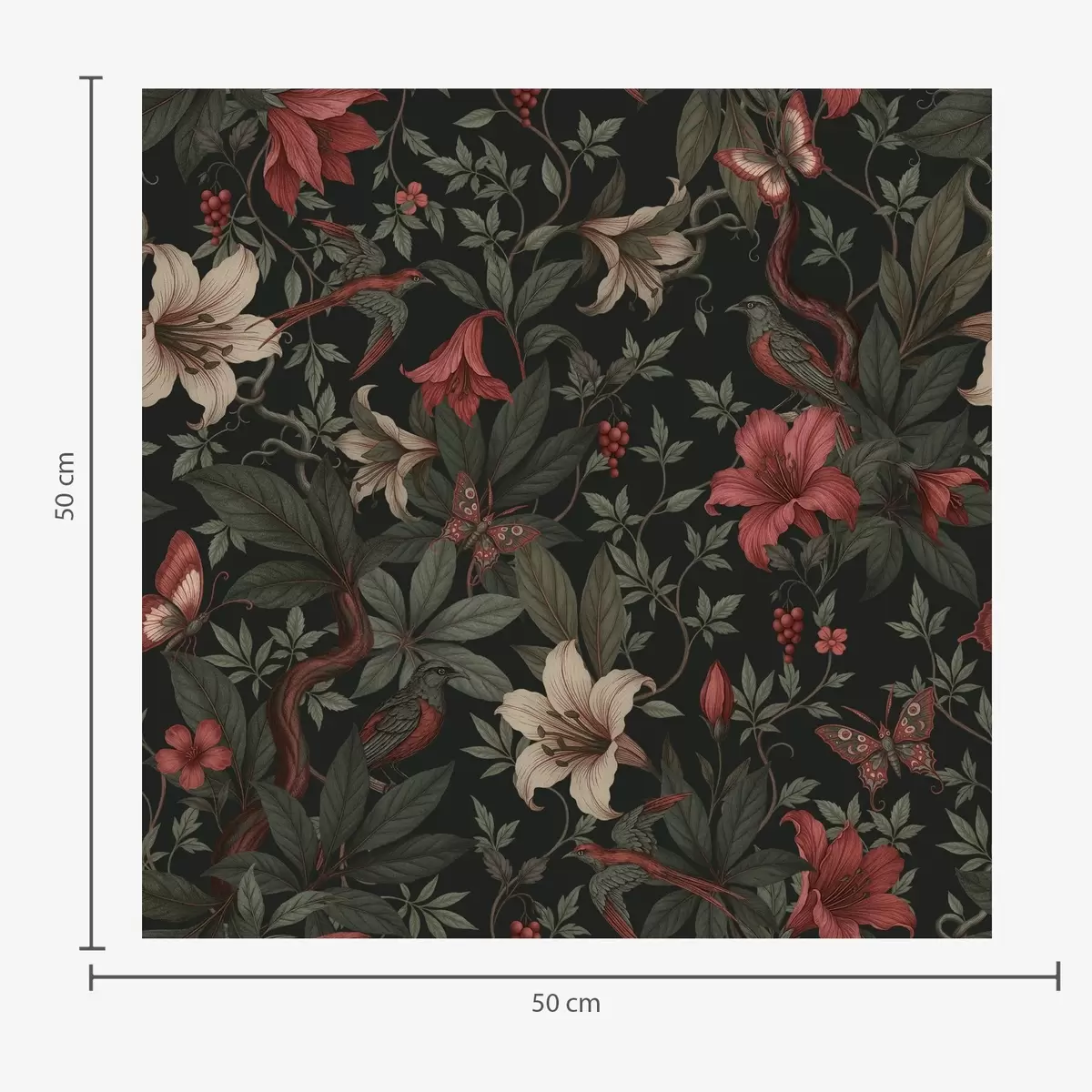 Тапет Тъмни джунглеви цветя с птици и пеперуди Nr. a00895