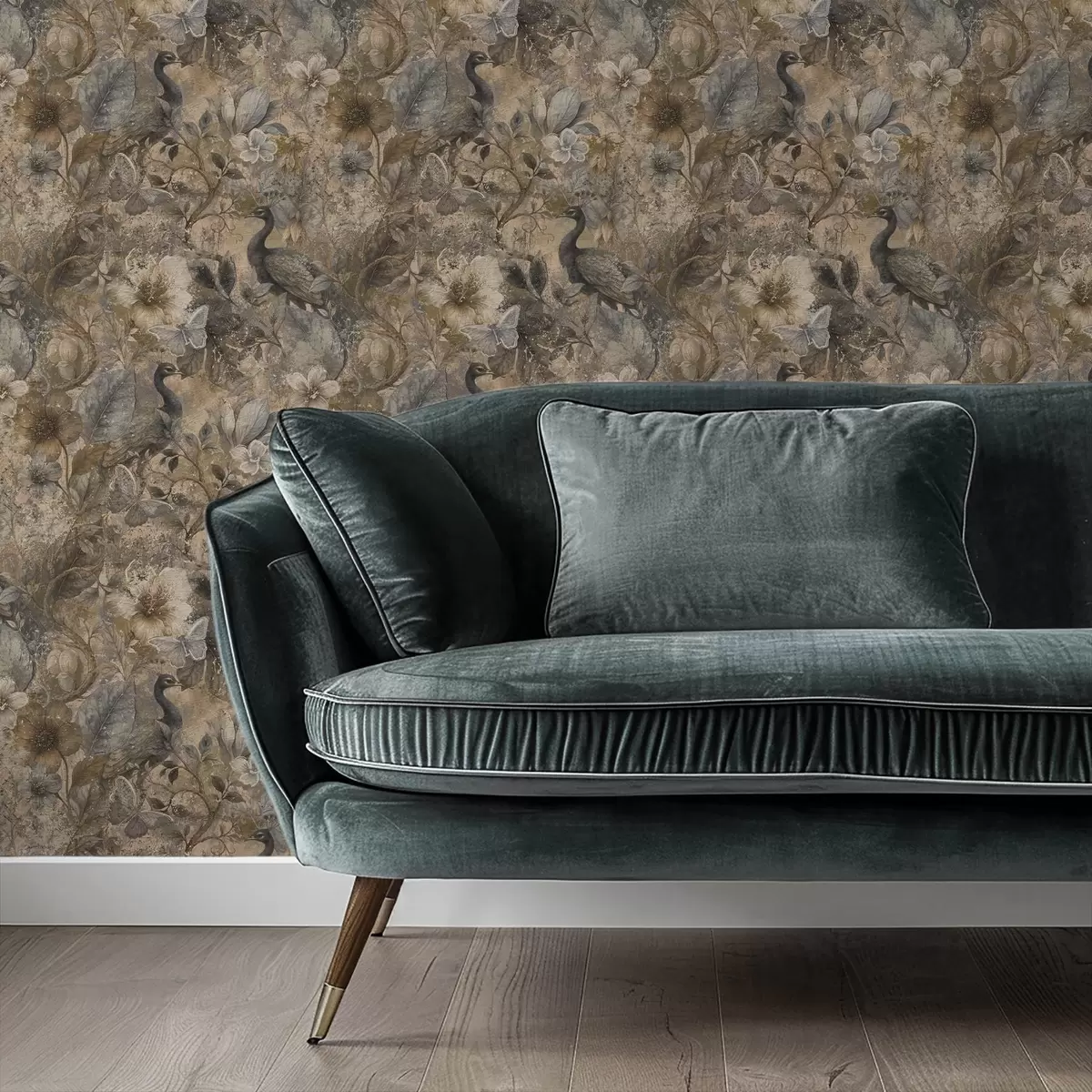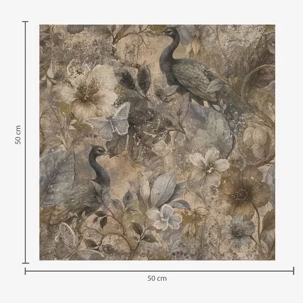 Тапет Старинна флорална колаж с пауни и пеперуди Nr. a00897