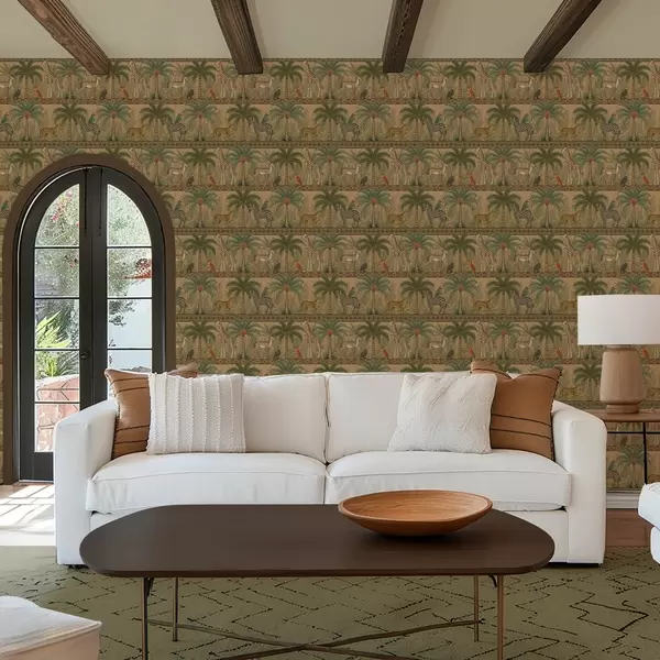 Тапети Декоративни животни от саваната между палми и бордюри a00898