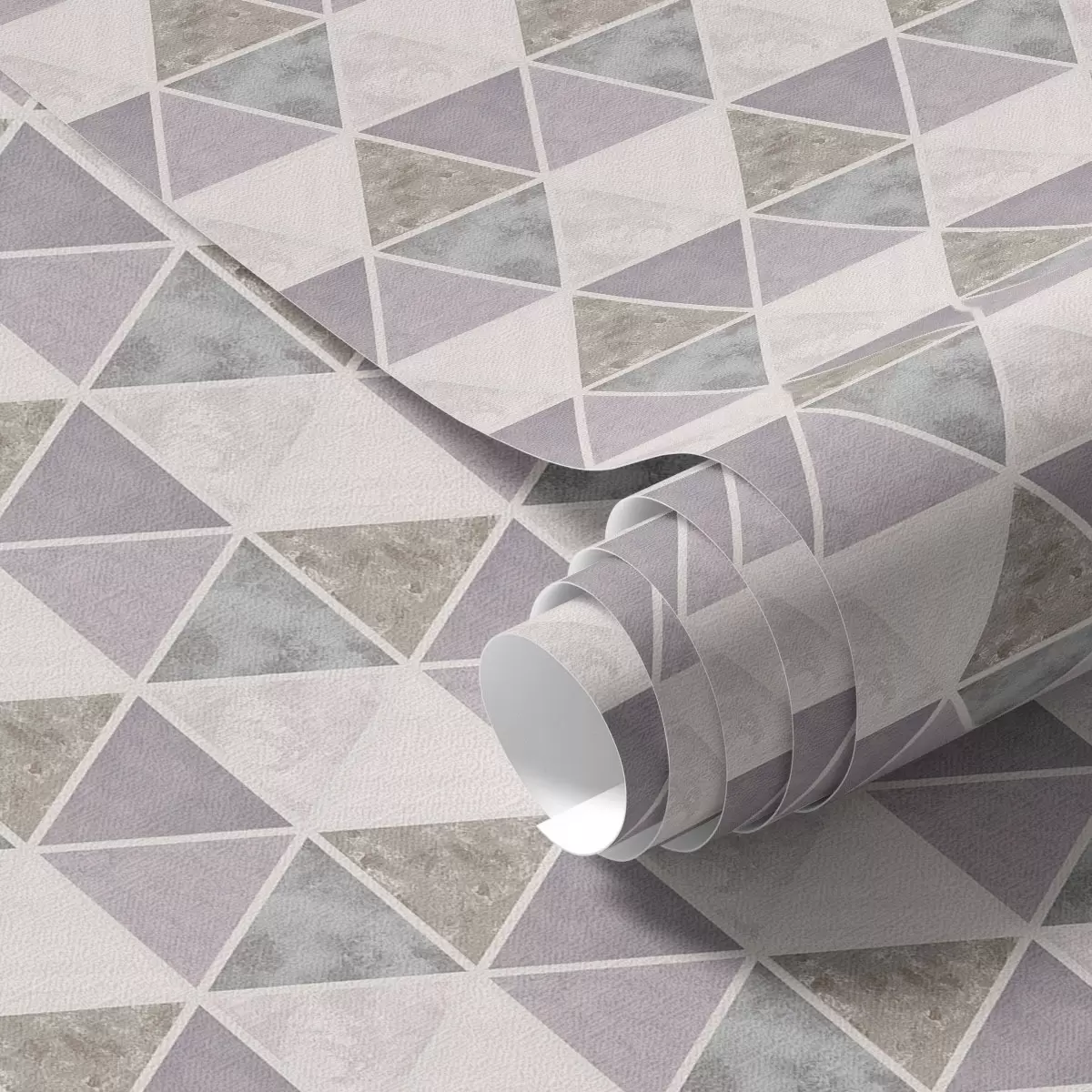 Тапет Триъгълници с текстурирани вложки, смесица от лилаво и сиво Nr. a00917