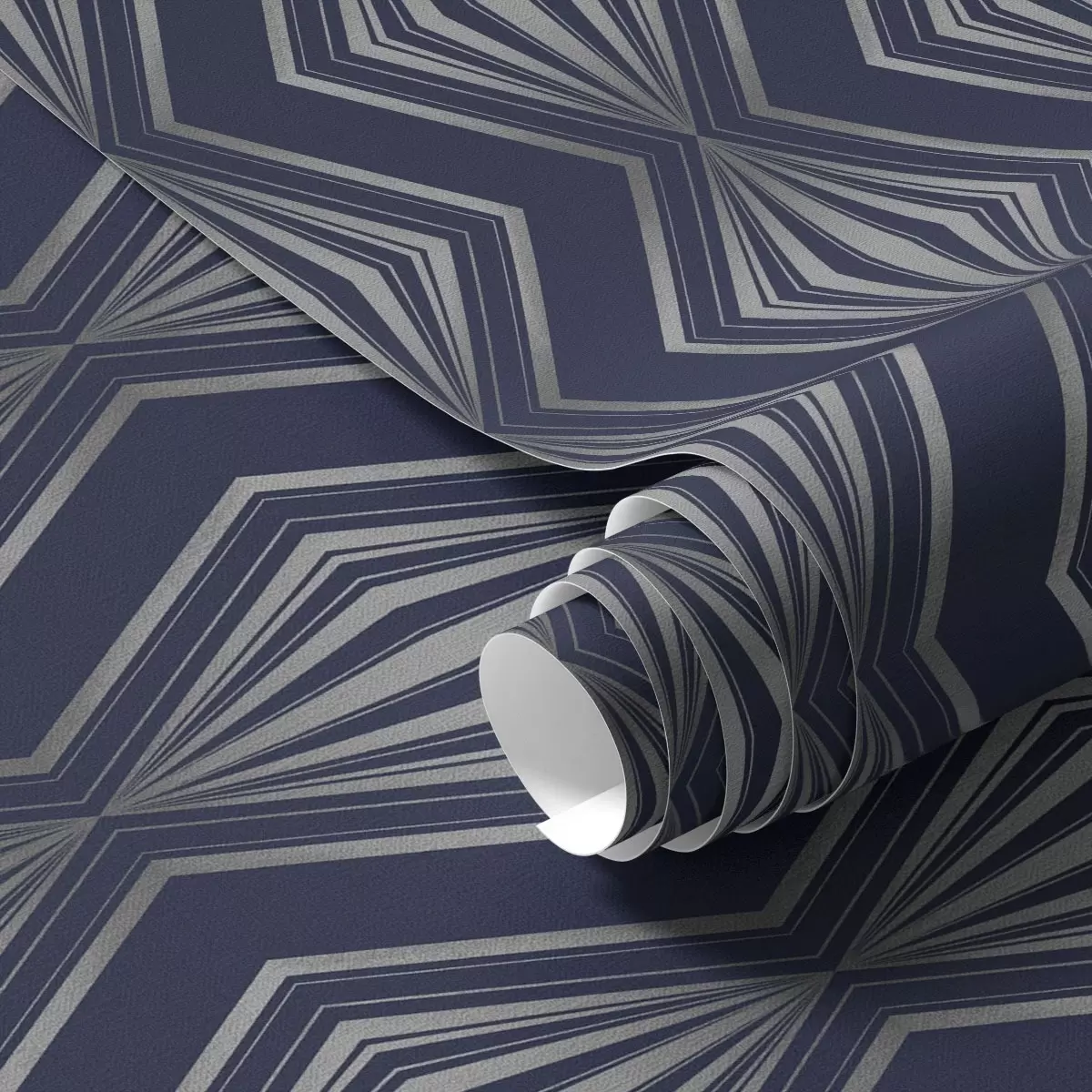 Тапет Геометрични диаманти, наподобяващи лъчи, на тъмно син фон Nr. a00925