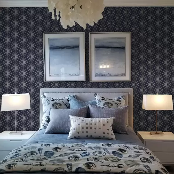 Тапет Геометрични диаманти, наподобяващи лъчи, на тъмно син фон Nr. a00925